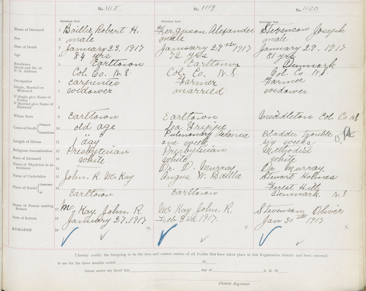 Male Death Registration: Year: 1917 book: 31 page: 335 number: 1120