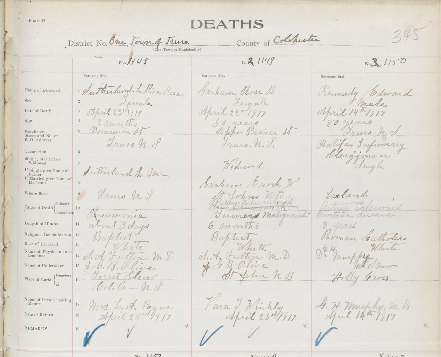 Male Death Registration: Year: 1917 book: 31 page: 345 number: 1150