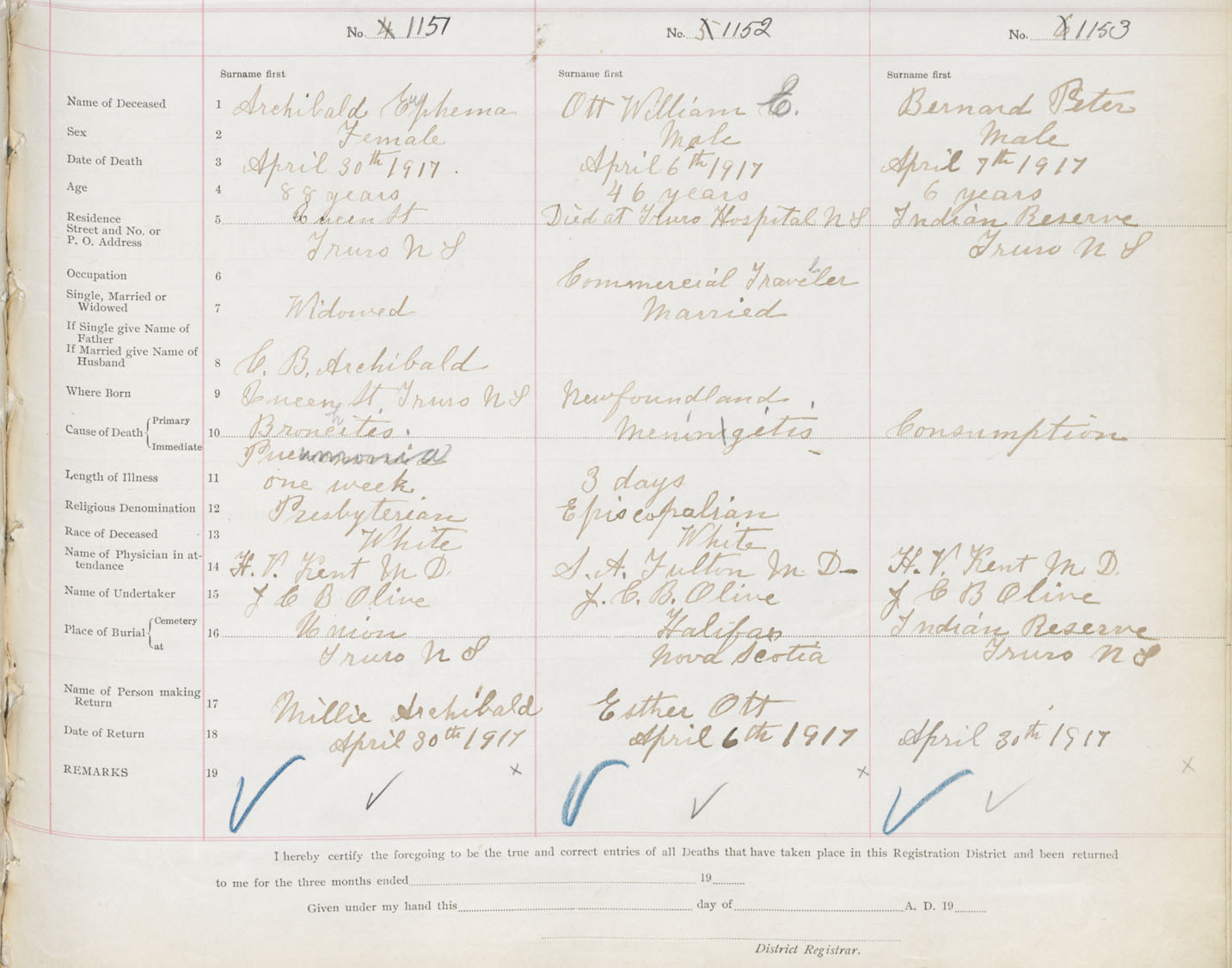 Male Death Registration: Year: 1917 book: 31 page: 345 number: 1153