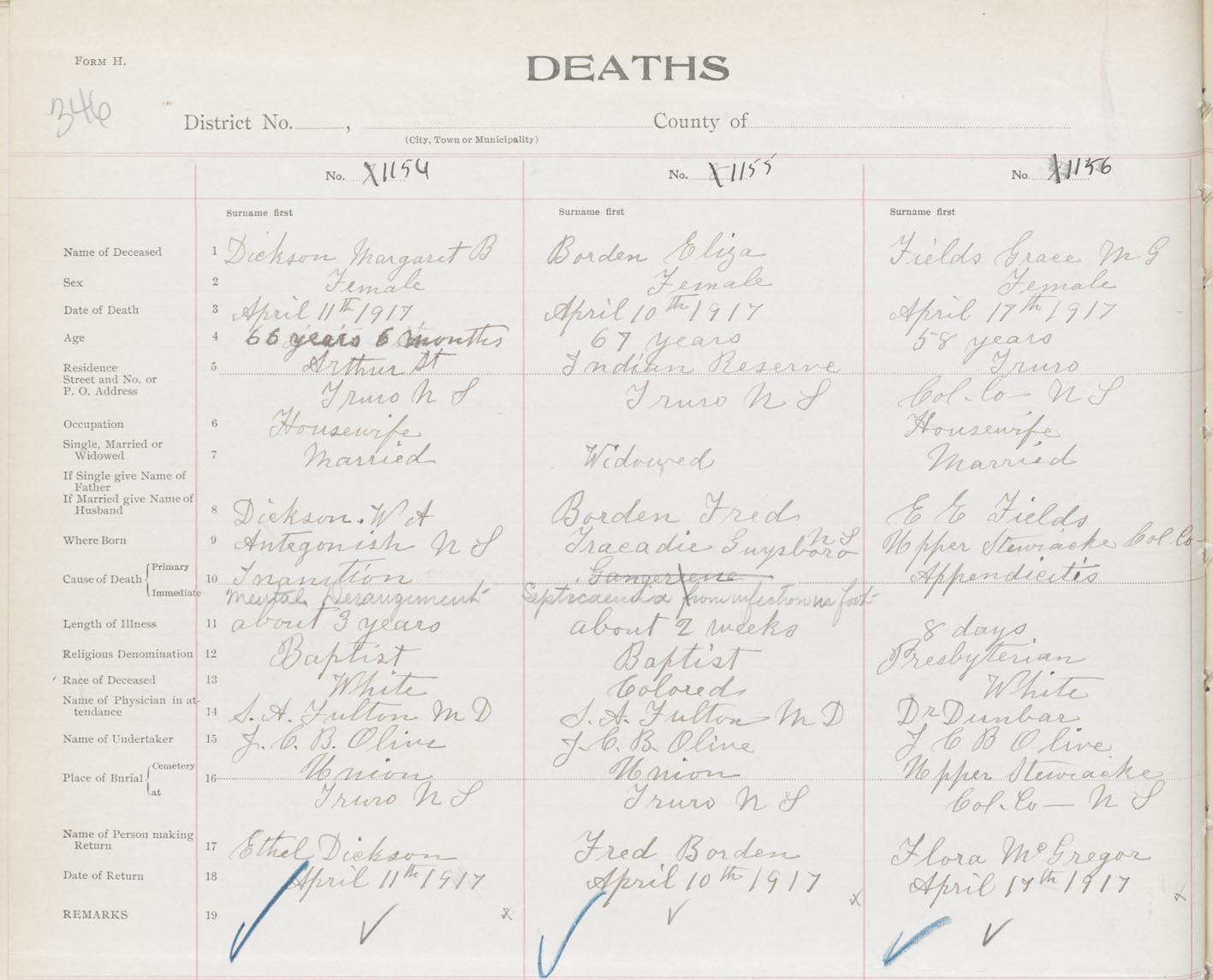 Female Death Registration: Year: 1917 book: 31 page: 346 number: 1156