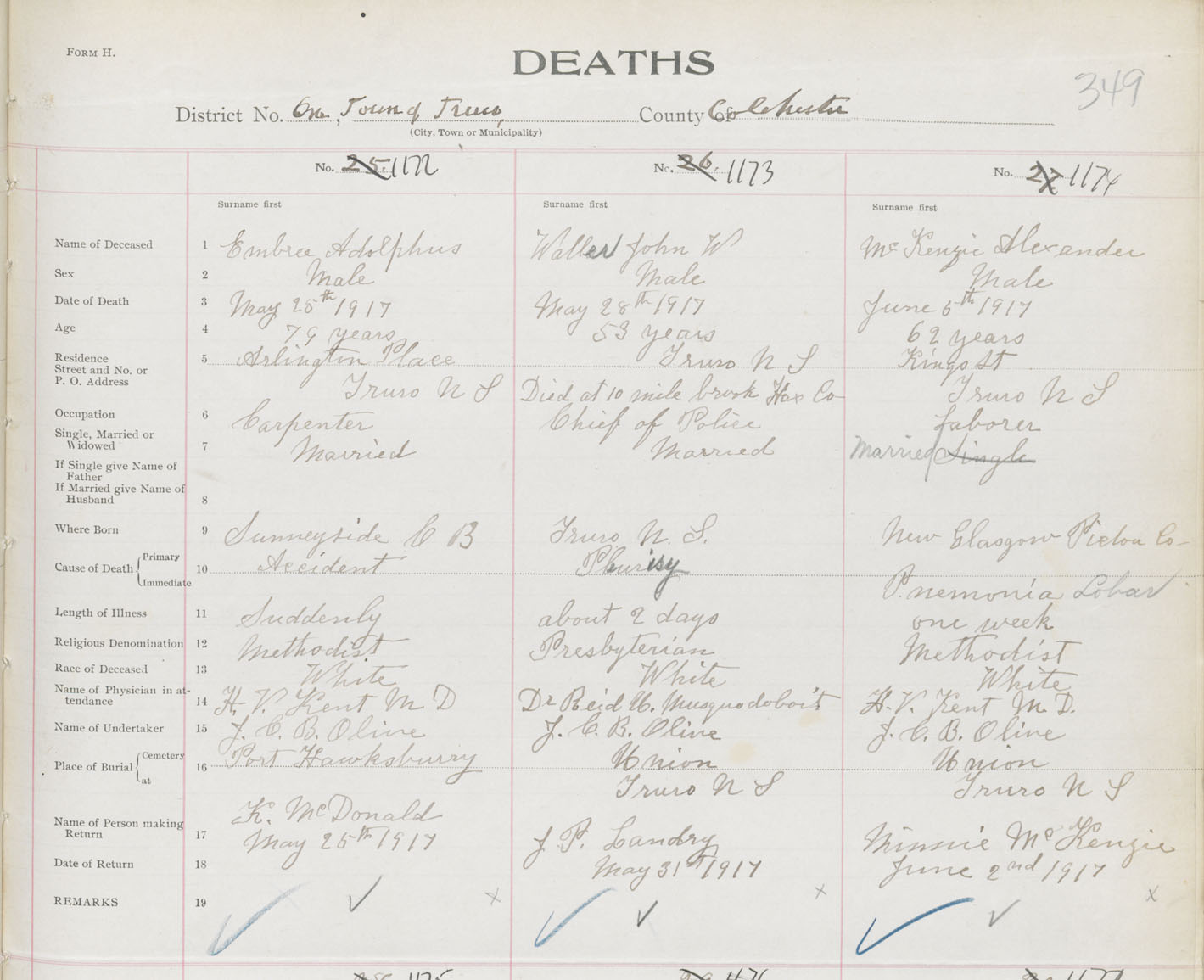 Male Death Registration: Year: 1917 book: 31 page: 349 number: 1174