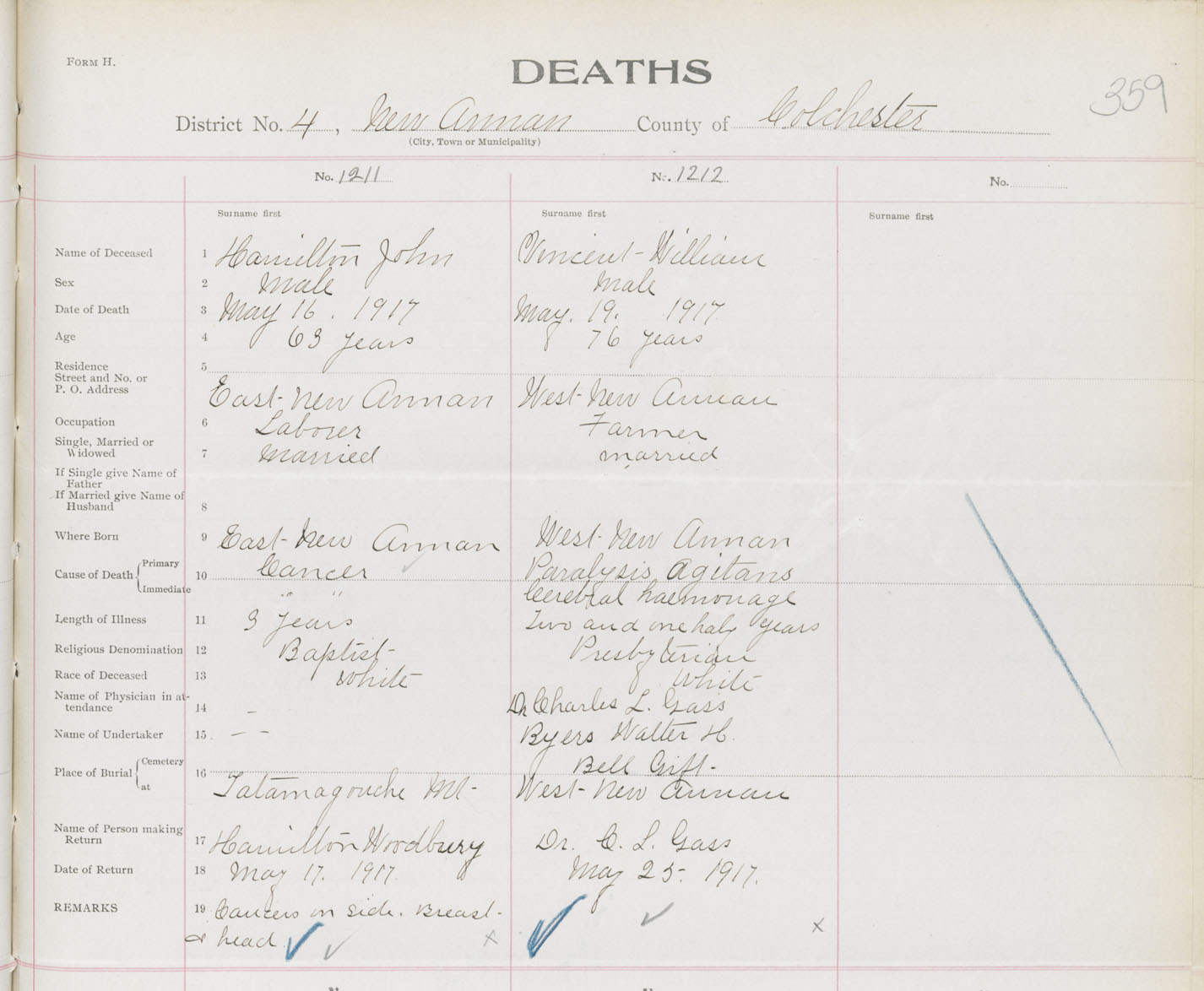 Male Death Registration: Year: 1917 book: 31 page: 359 number: 1212