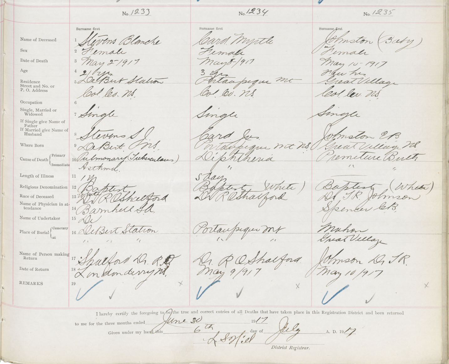 Female Death Registration: Year: 1917 book: 31 page: 367 number: 1235