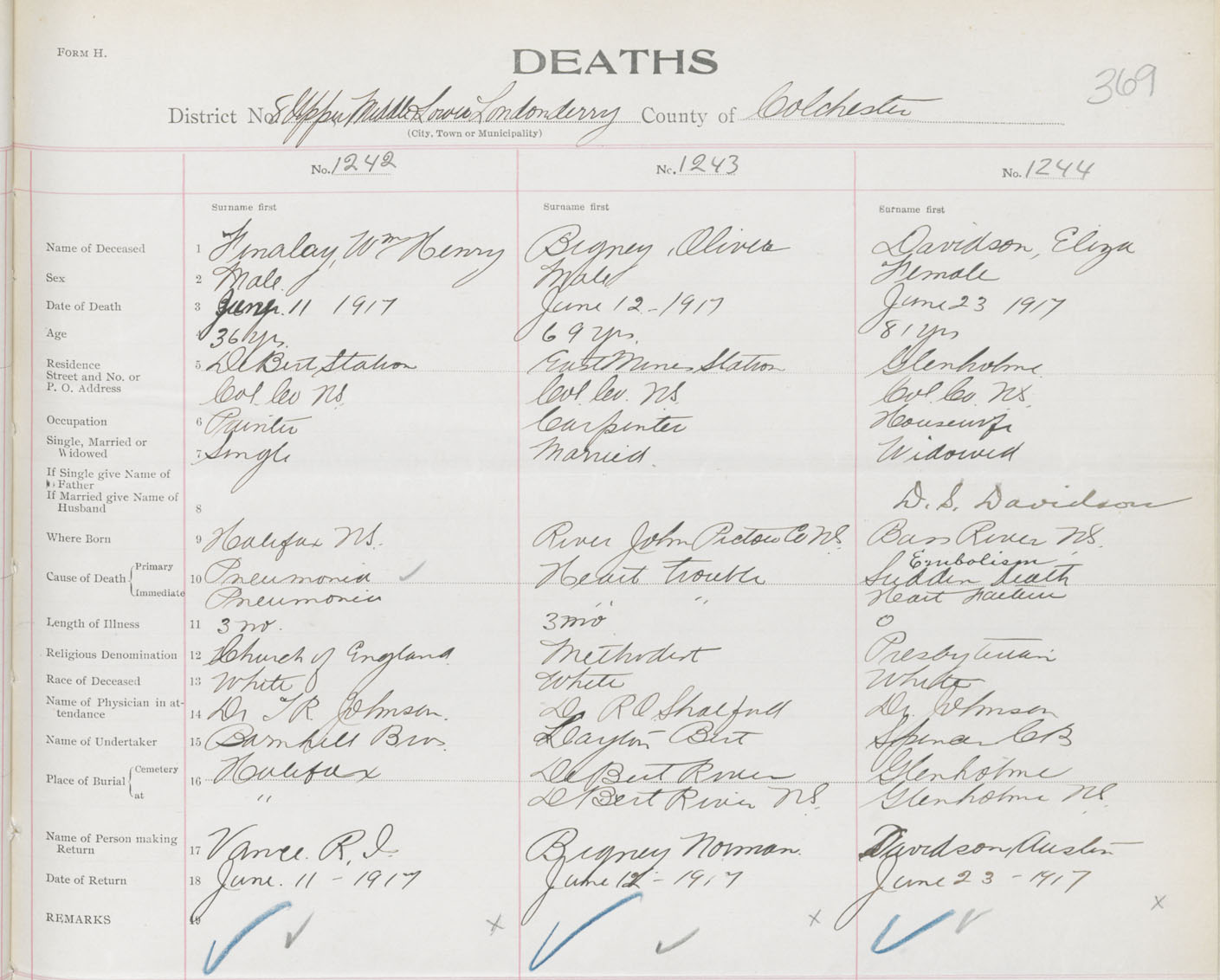 Female Death Registration: Year: 1917 book: 31 page: 369 number: 1244