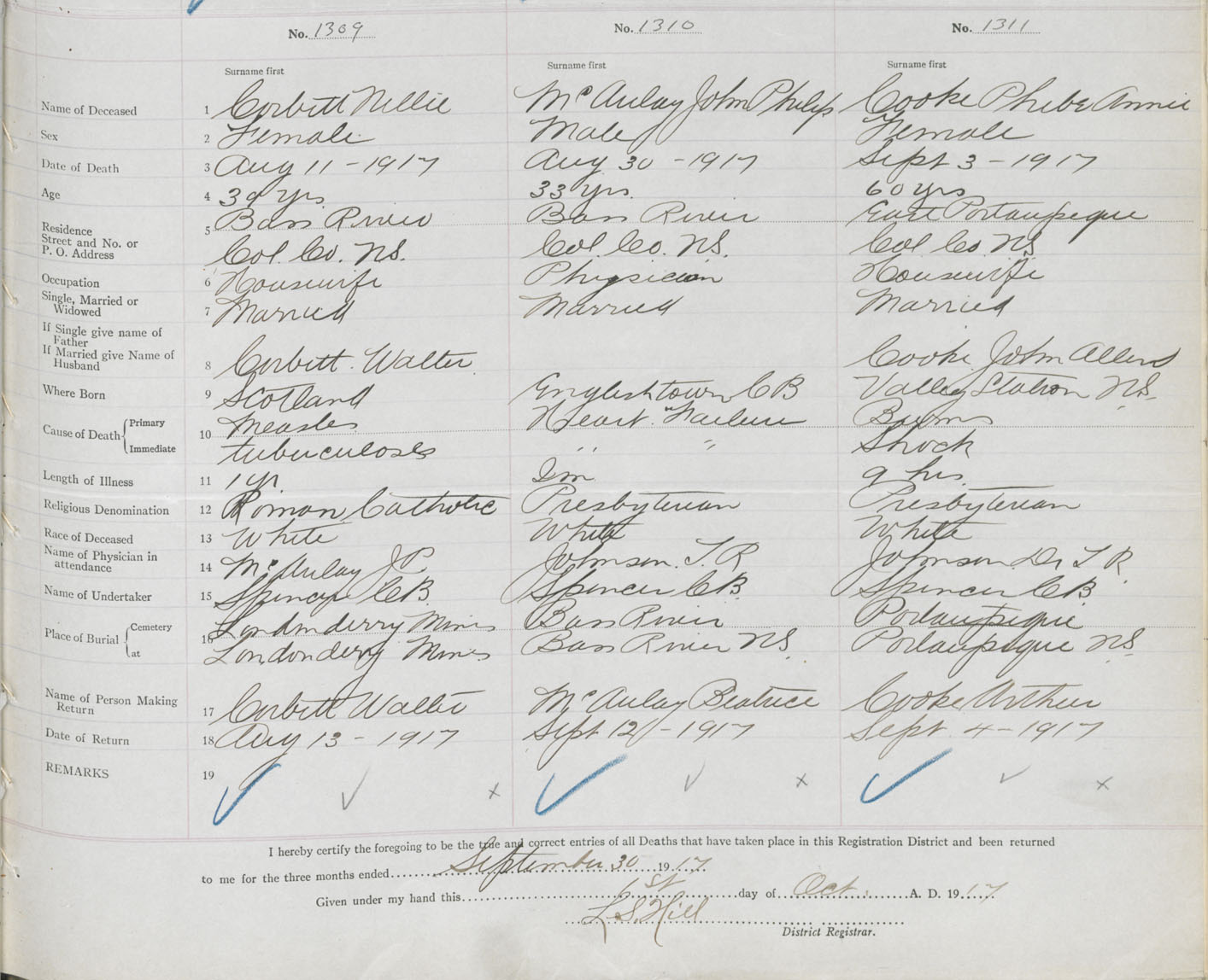 Female Death Registration: Year: 1917 book: 31 page: 393 number: 1311