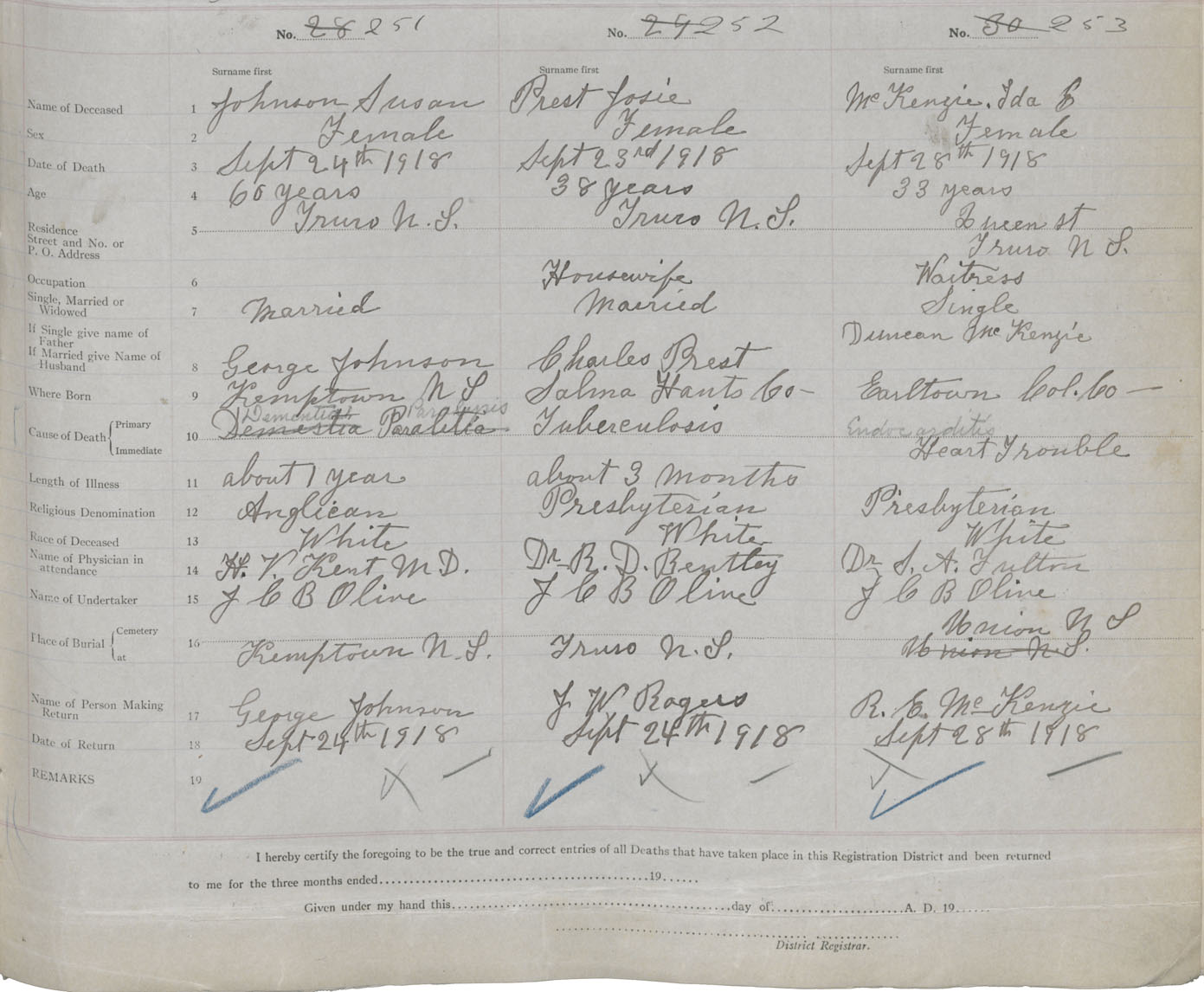 Female Death Registration: Year: 1918 book: 32 page: 65 number: 253