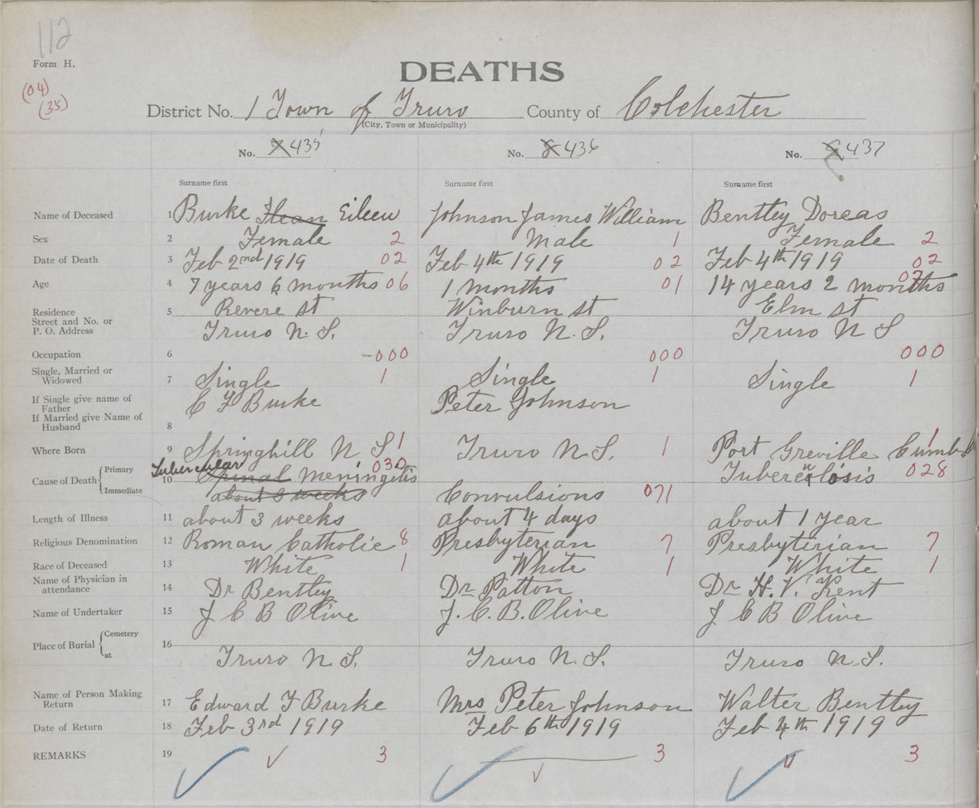 Female Death Registration: Year: 1919 book: 32 page: 112 number: 435