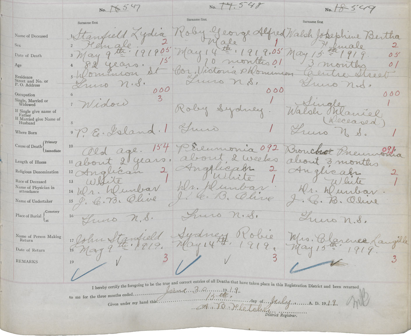 Female Death Registration: Year: 1919 book: 32 page: 141 number: 547