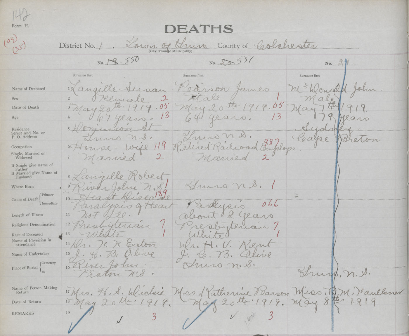 Female Death Registration: Year: 1919 book: 32 page: 142 number: 550