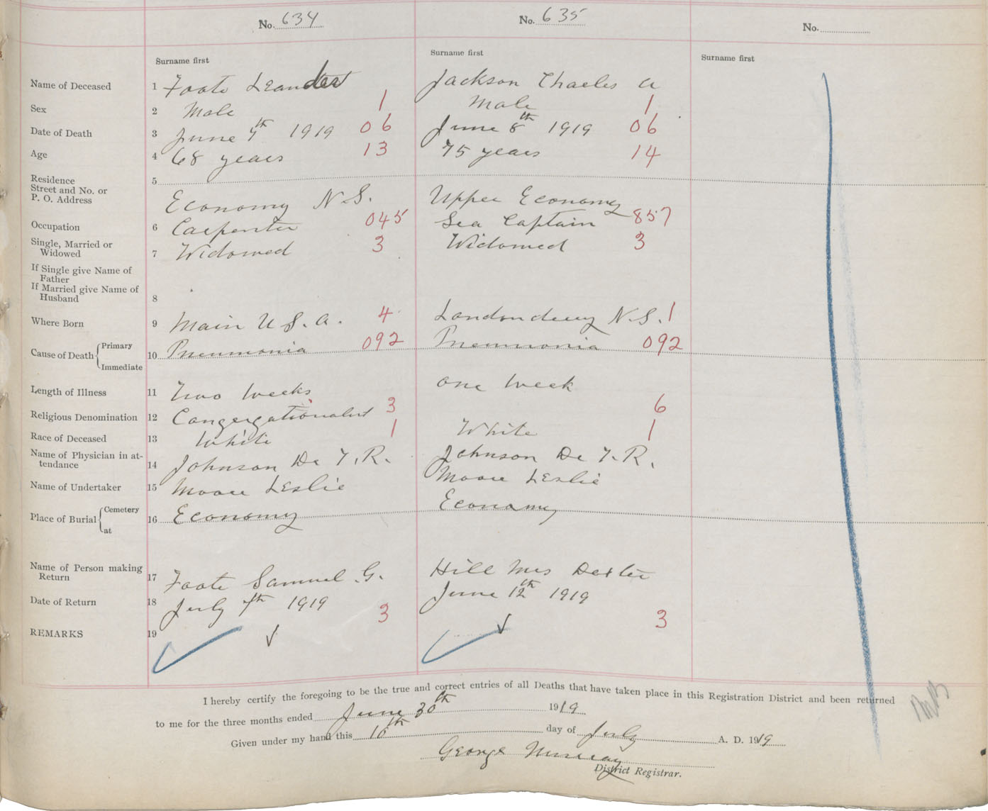Male Death Registration: Year: 1919 book: 32 page: 167 number: 635