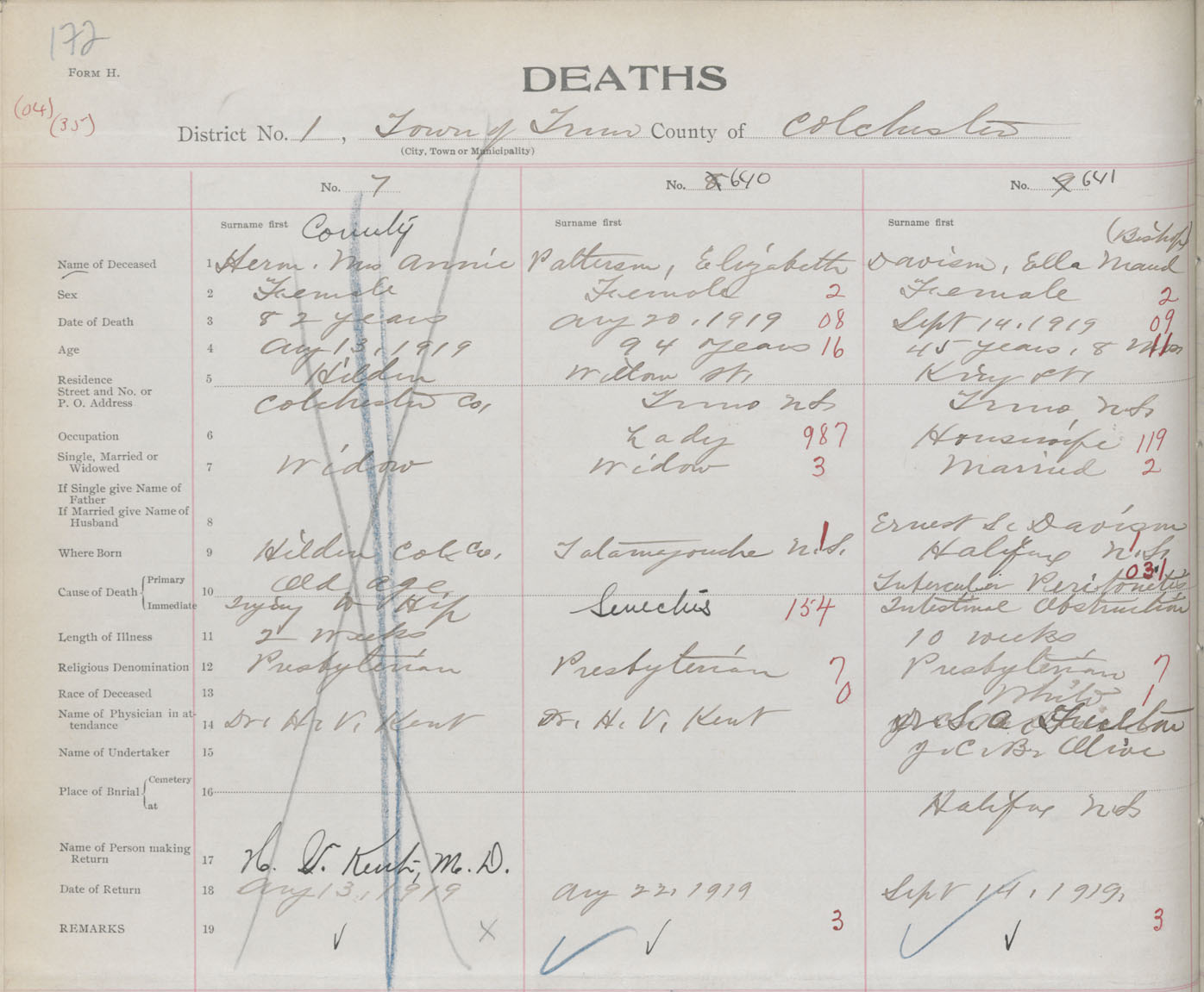 Female Death Registration: Year: 1919 book: 32 page: 172 number: 641