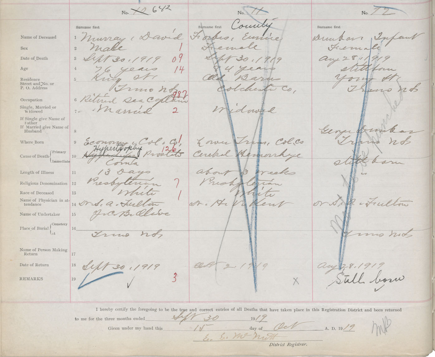 Male Death Registration: Year: 1919 book: 32 page: 172 number: 642