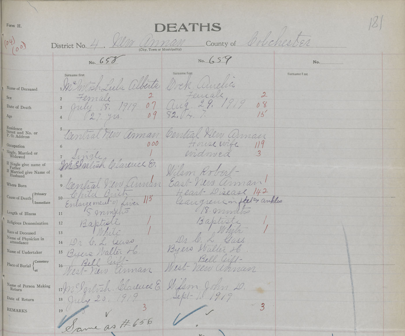 Female Death Registration: Year: 1919 book: 32 page: 181 number: 659