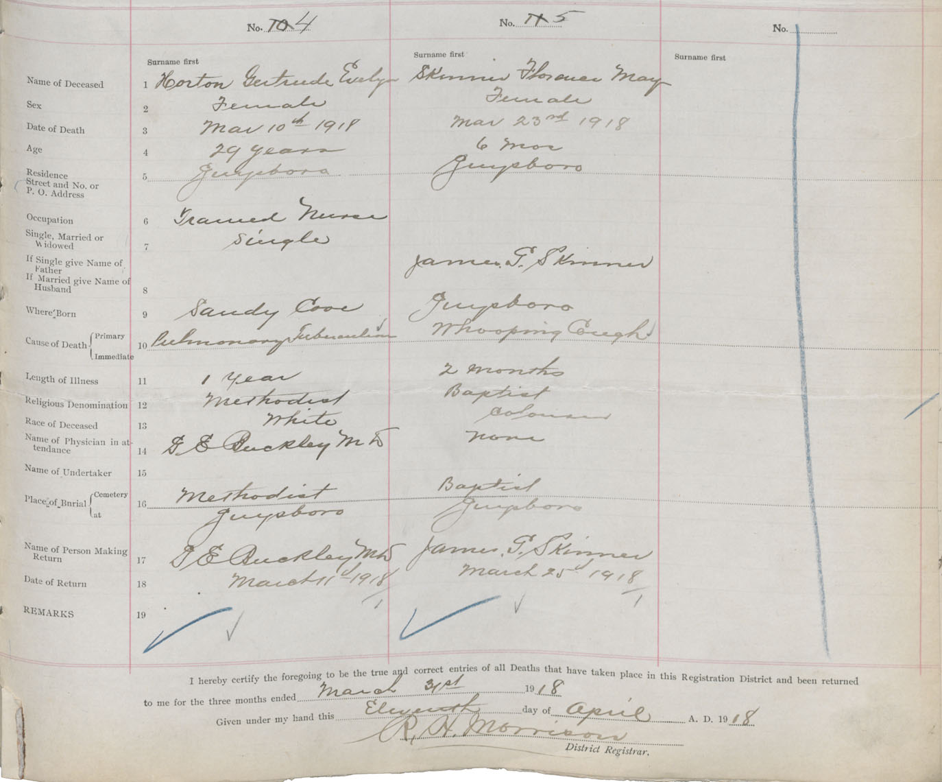 Female Death Registration: Year: 1918 book: 32 page: 193 number: 5