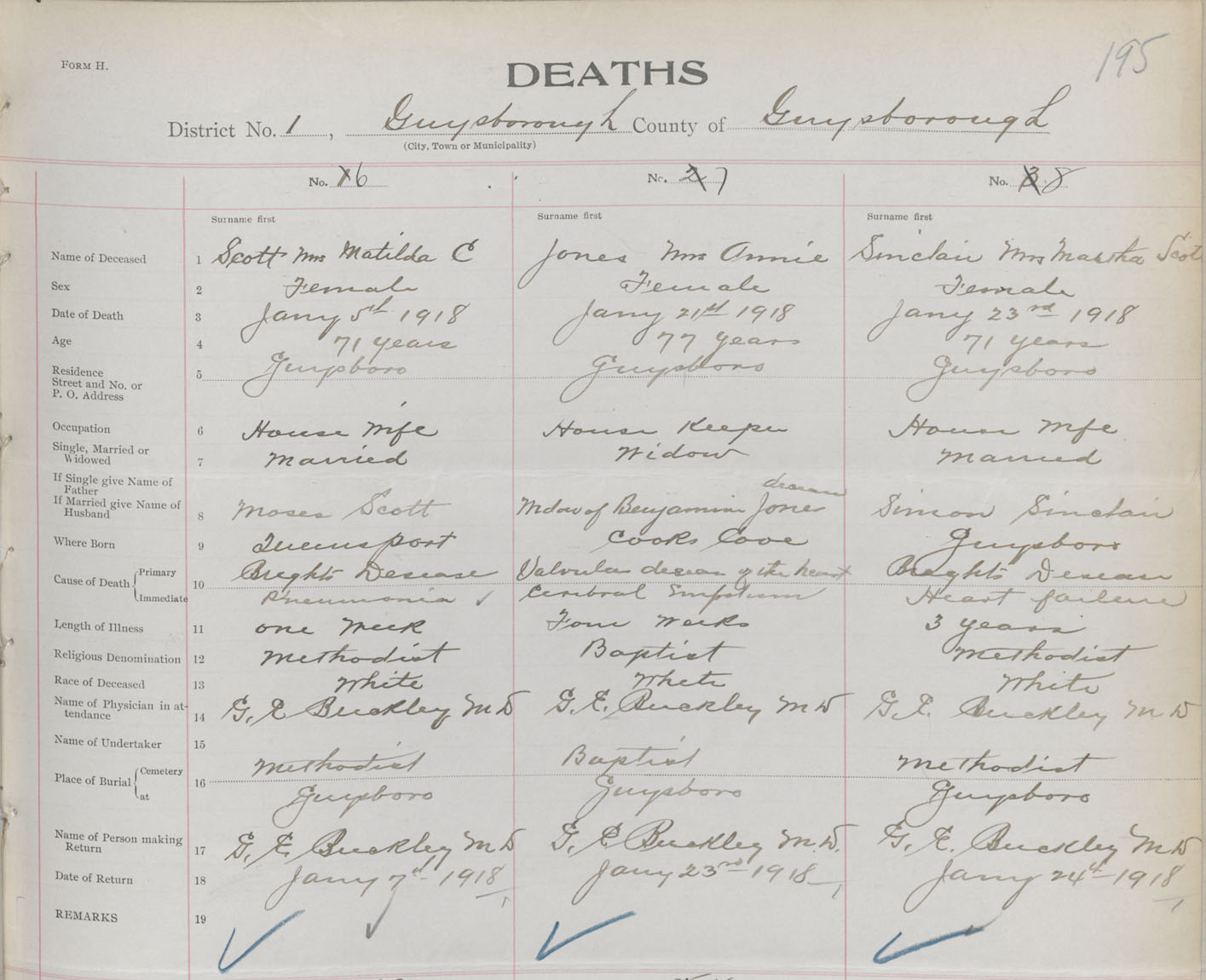 Female Death Registration: Year: 1918 book: 32 page: 195 number: 8