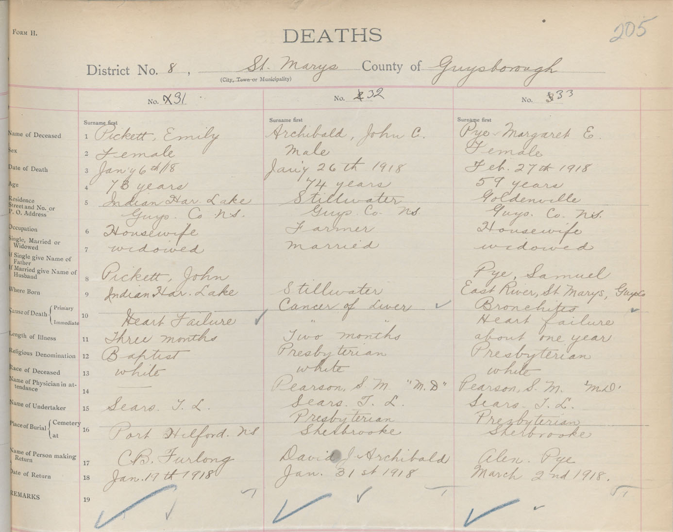 Female Death Registration: Year: 1918 book: 32 page: 205 number: 33