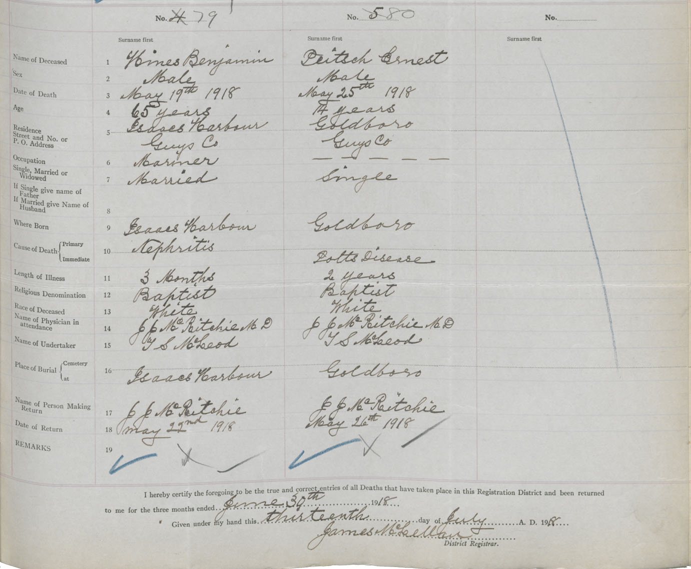 Male Death Registration: Year: 1918 book: 32 page: 235 number: 80
