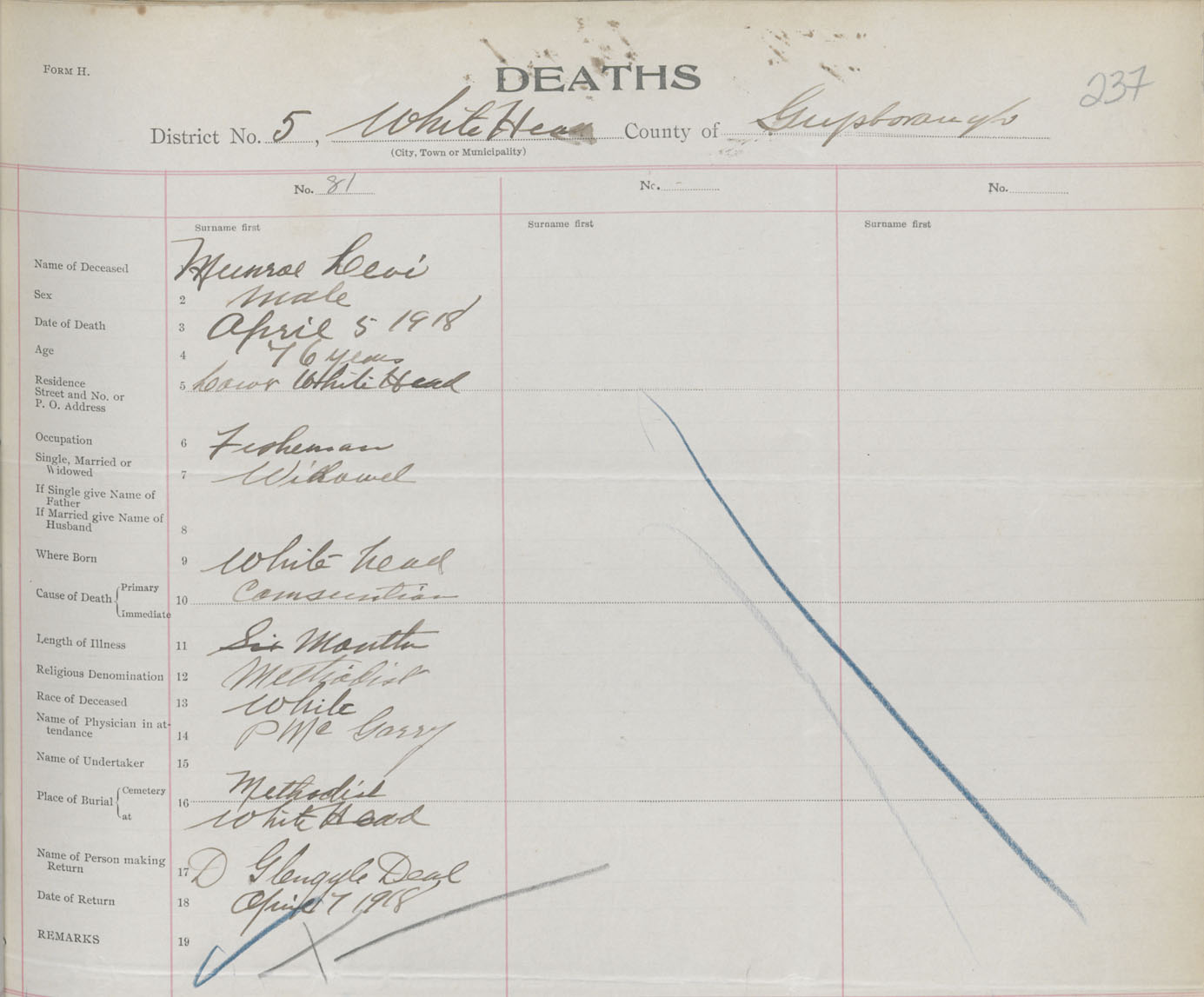 Male Death Registration: Year: 1918 book: 32 page: 237 number: 81
