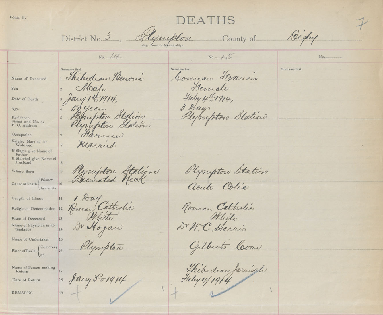 Male Death Registration: Year: 1914 book: 33 page: 7 number: 14