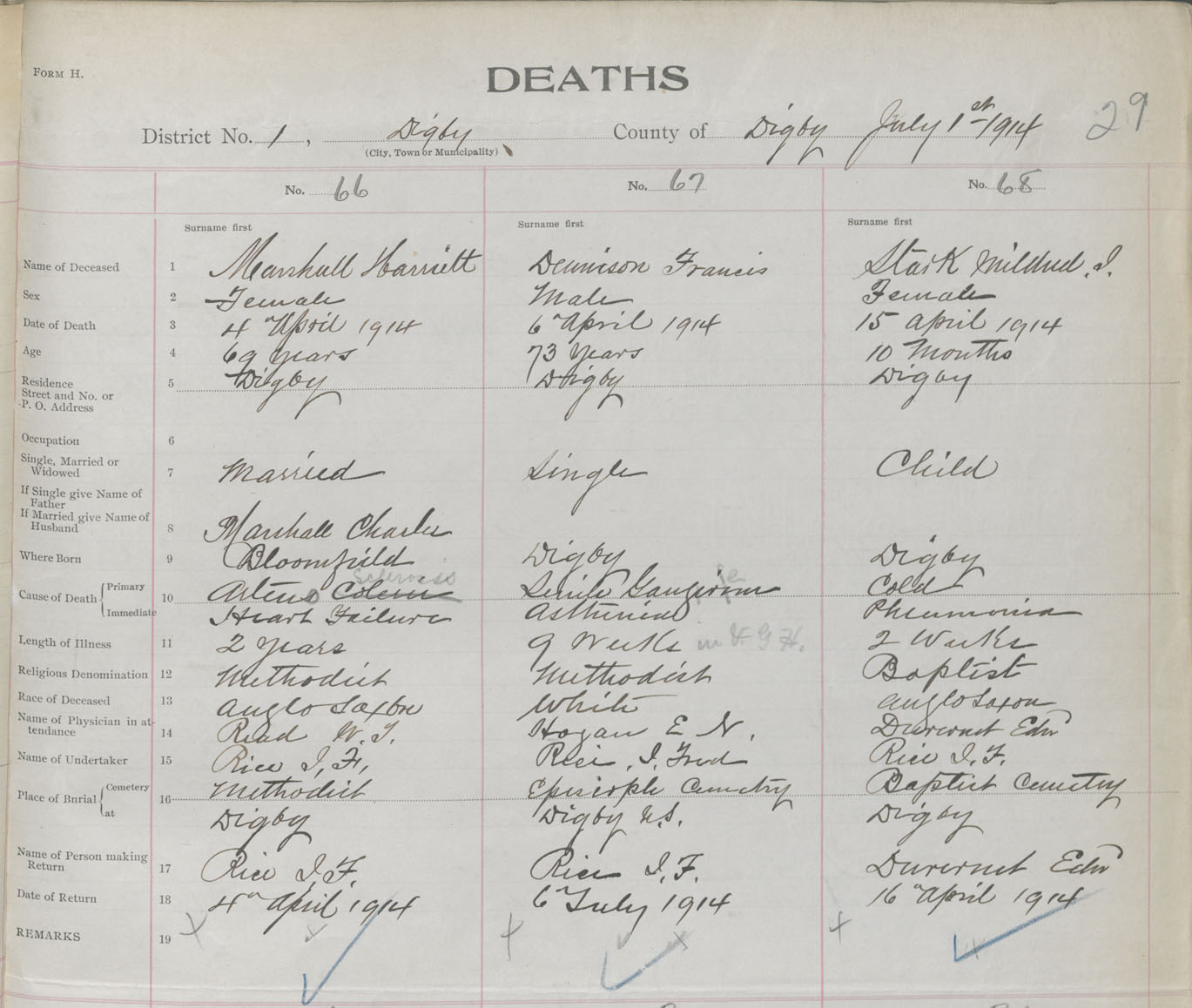 Female Death Registration: Year: 1914 book: 33 page: 29 number: 66