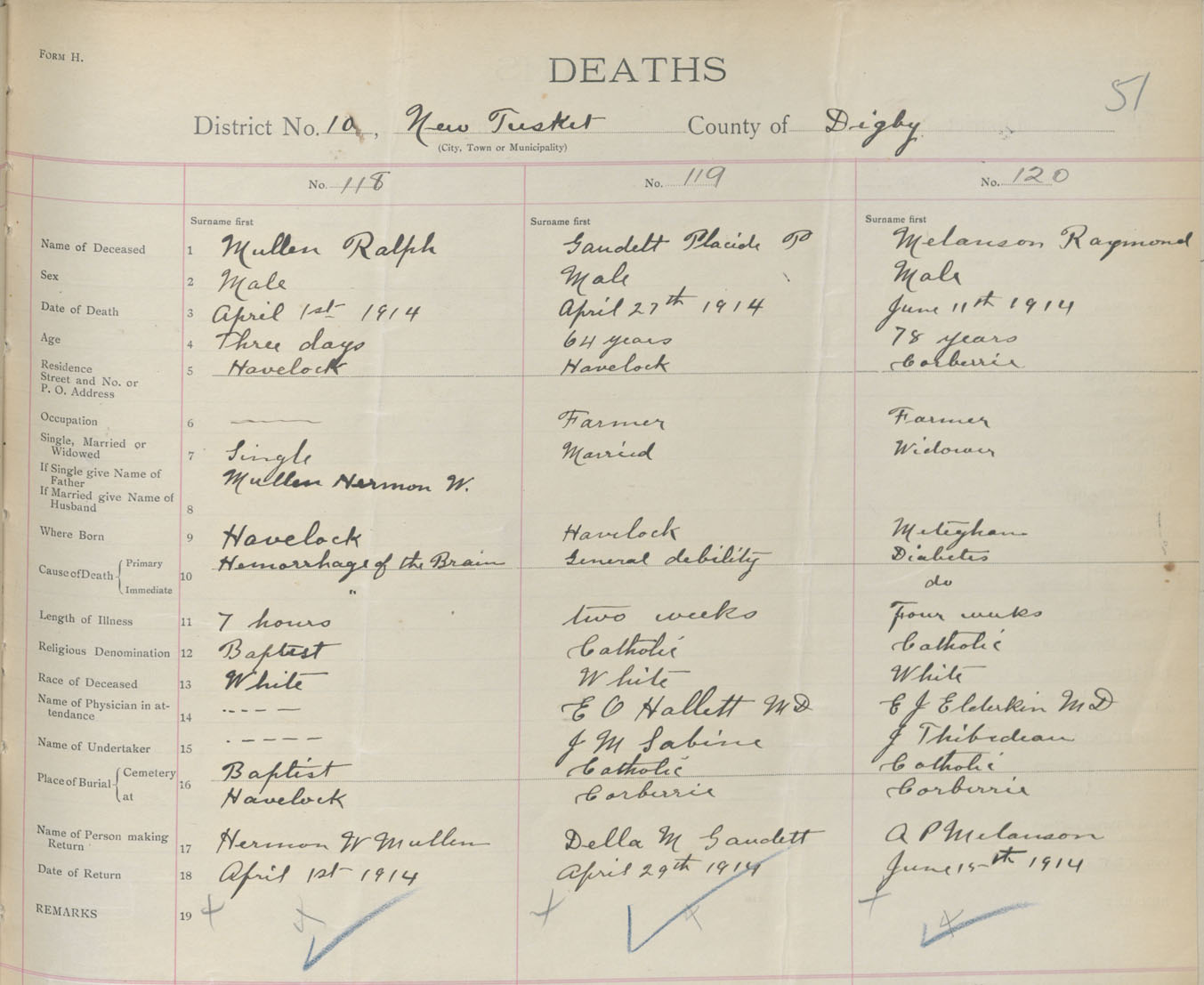 Male Death Registration: Year: 1914 book: 33 page: 51 number: 118