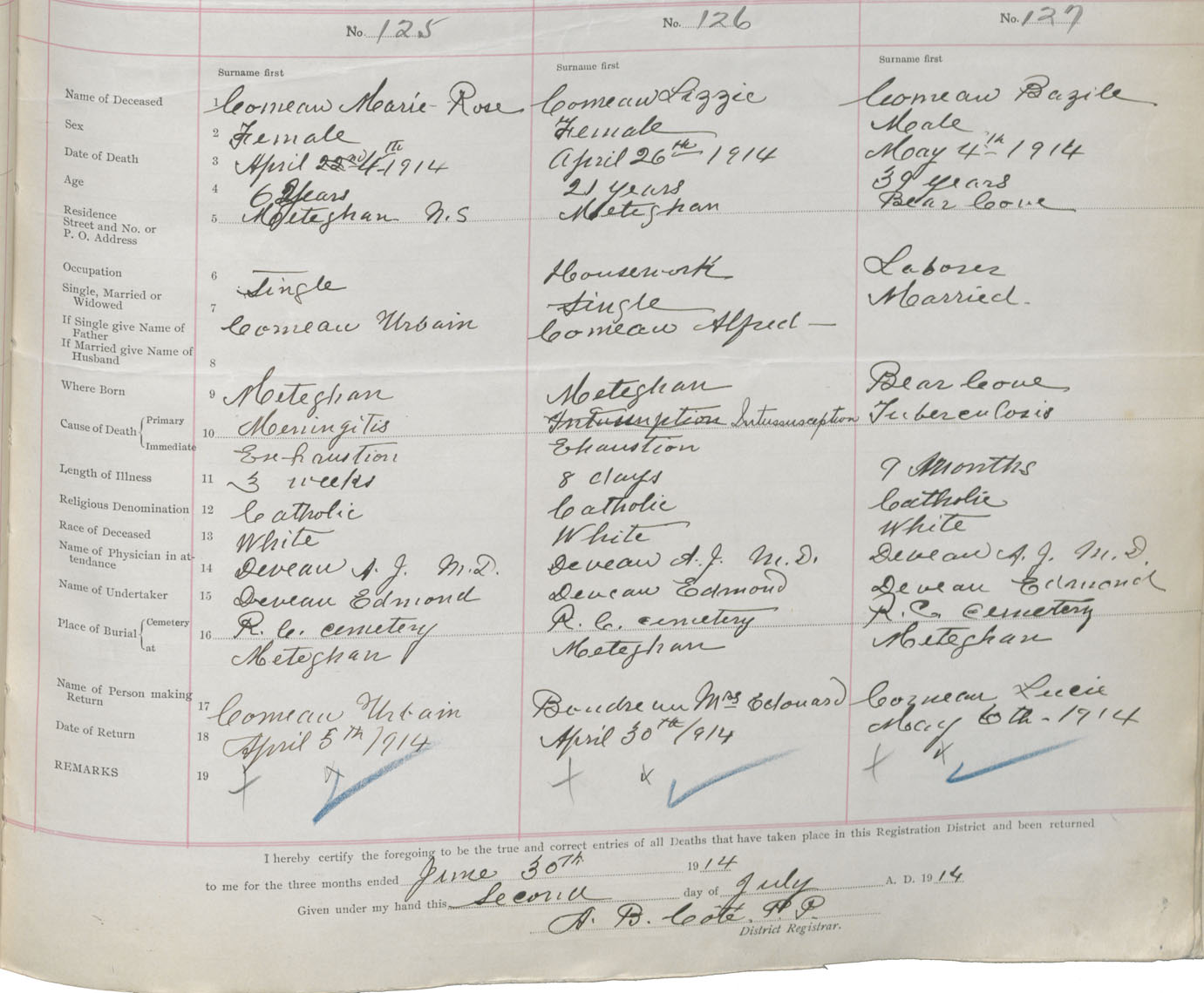 Female Death Registration: Year: 1914 book: 33 page: 53 number: 125