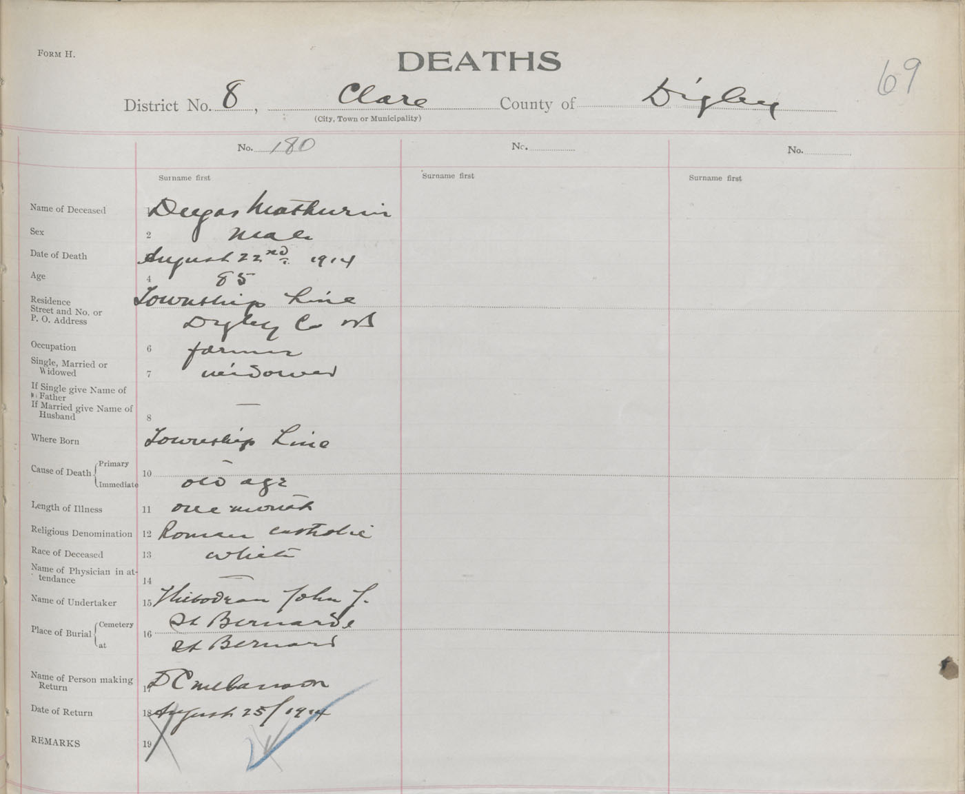 Male Death Registration: Year: 1914 book: 33 page: 69 number: 180