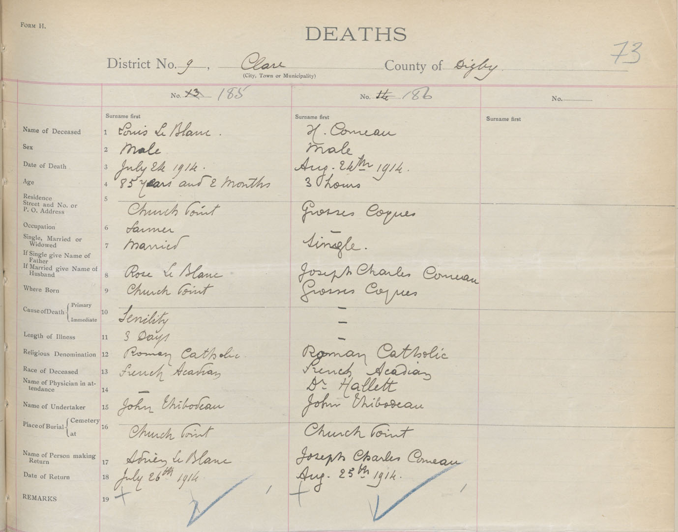 Male Death Registration: Year: 1914 book: 33 page: 73 number: 186
