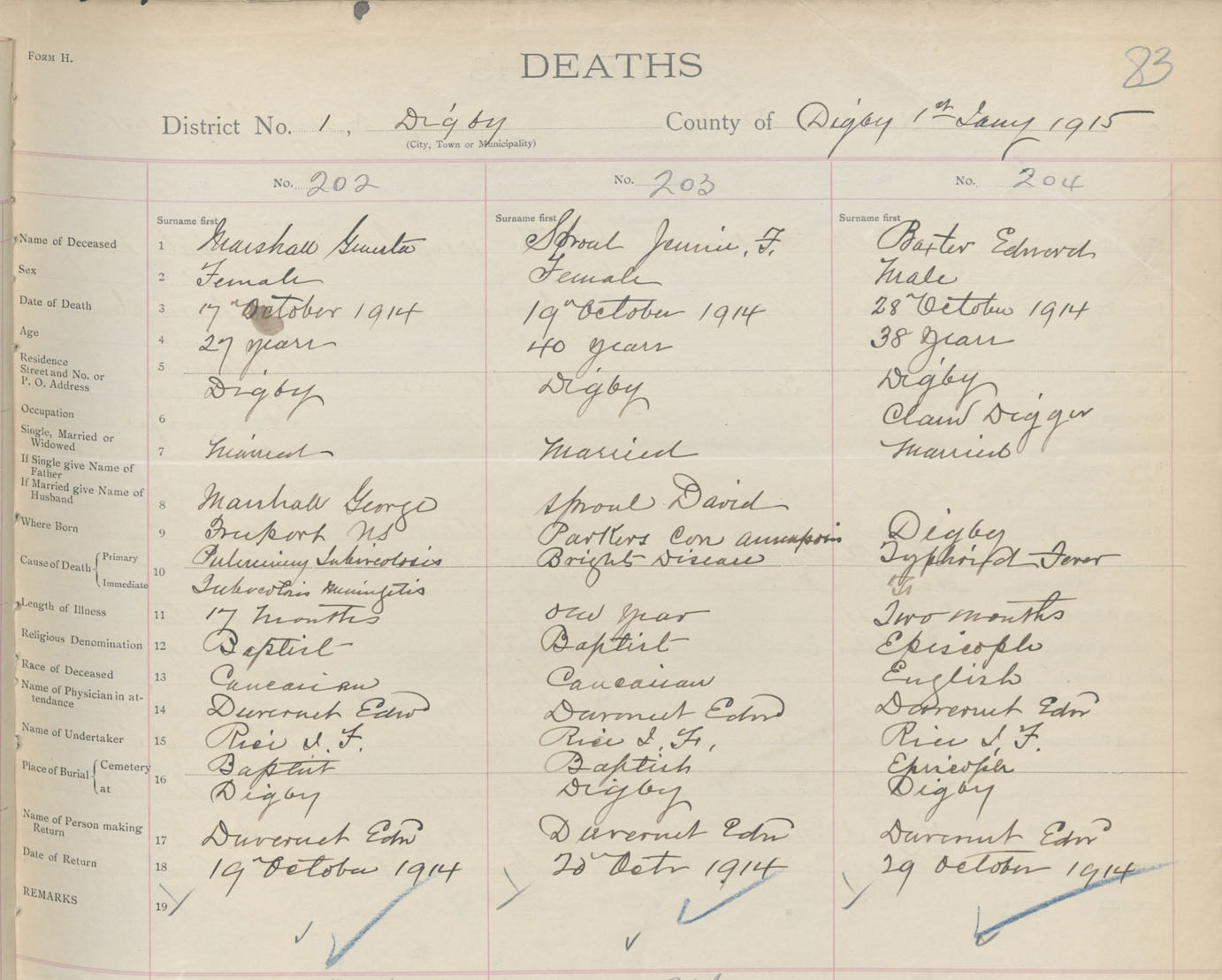 Male Death Registration: Year: 1914 book: 33 page: 83 number: 204