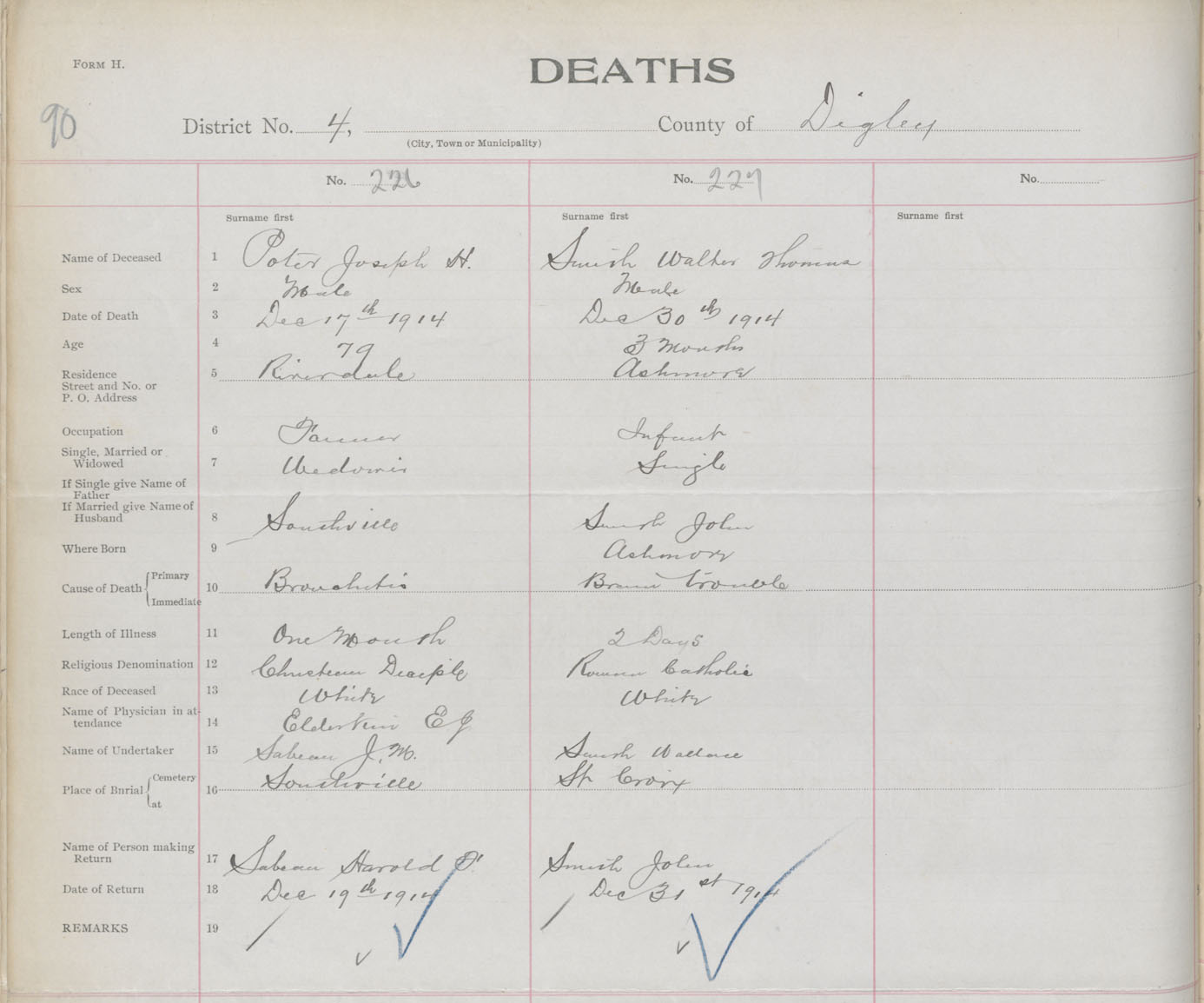 Male Death Registration: Year: 1914 book: 33 page: 90 number: 227