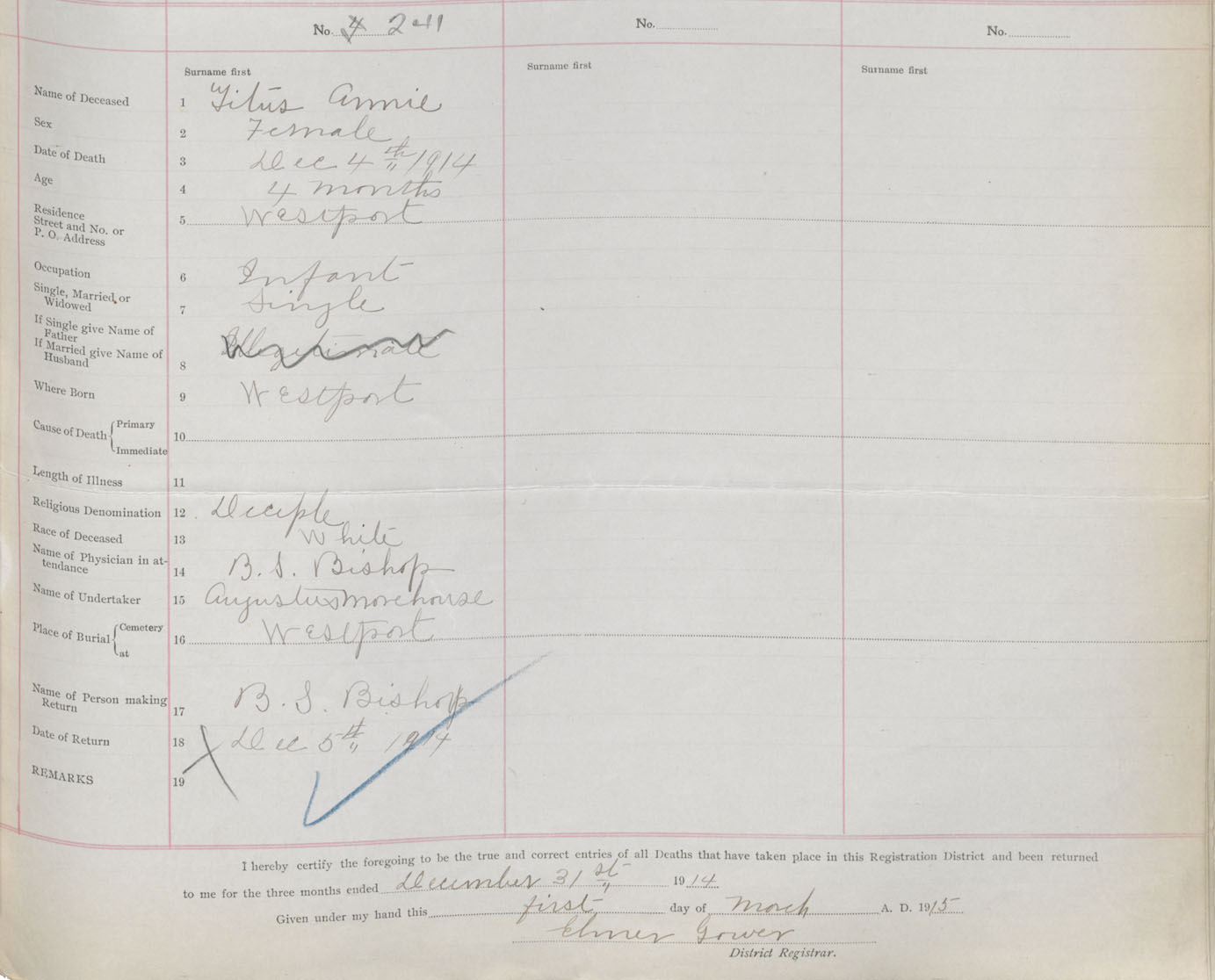 Female Death Registration: Year: 1914 book: 33 page: 95 number: 241