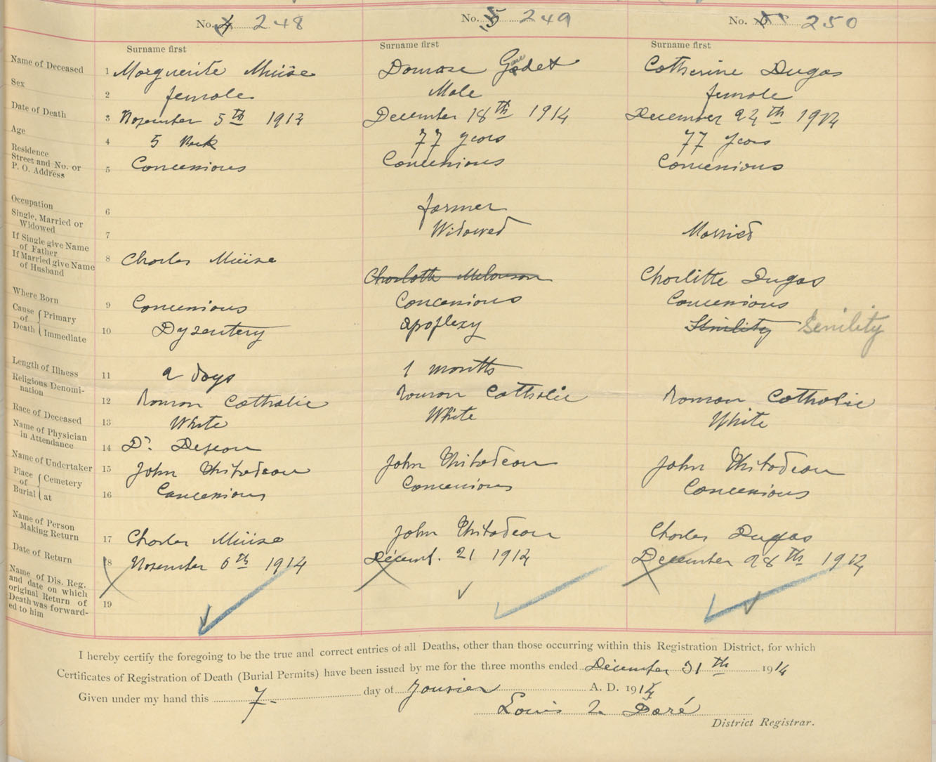 Female Death Registration: Year: 1914 book: 33 page: 99 number: 250