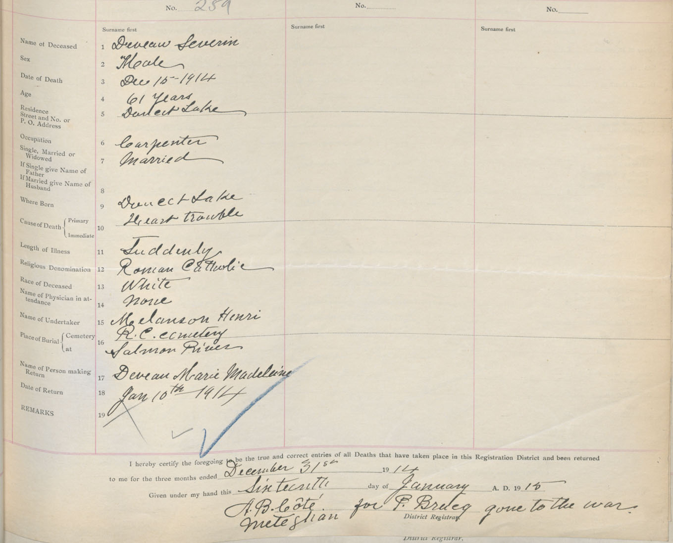 Male Death Registration: Year: 1914 book: 33 page: 103 number: 259