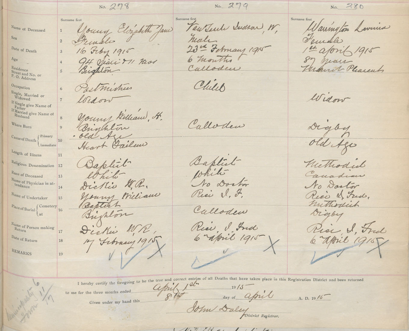 Female Death Registration: Year: 1915 book: 33 page: 109 number: 280