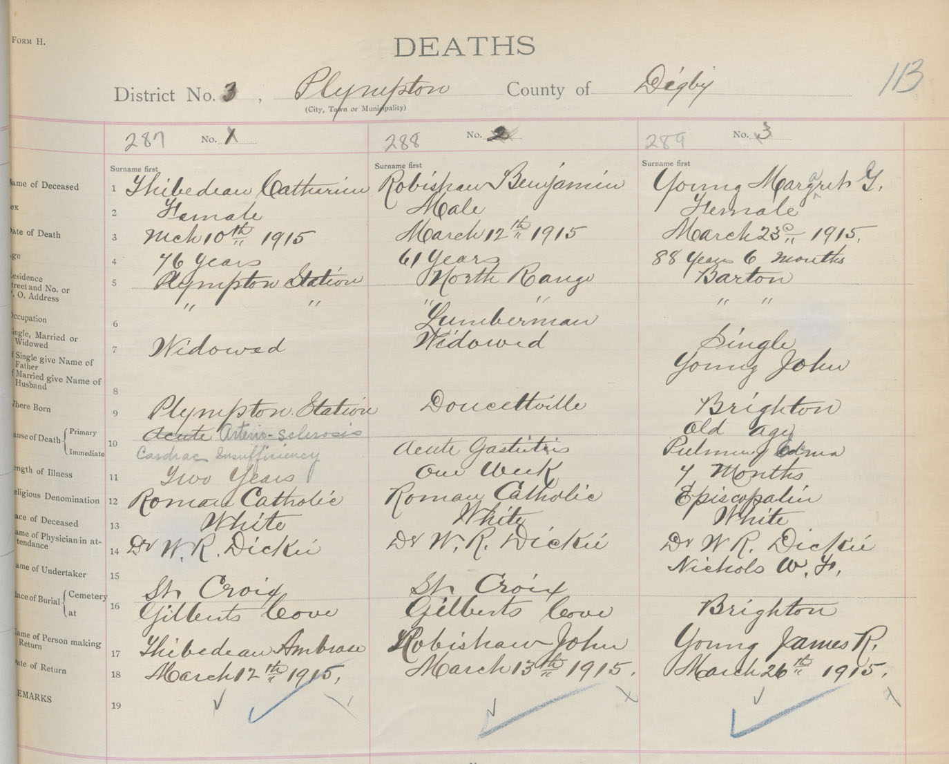 Female Death Registration: Year: 1915 book: 33 page: 113 number: 289