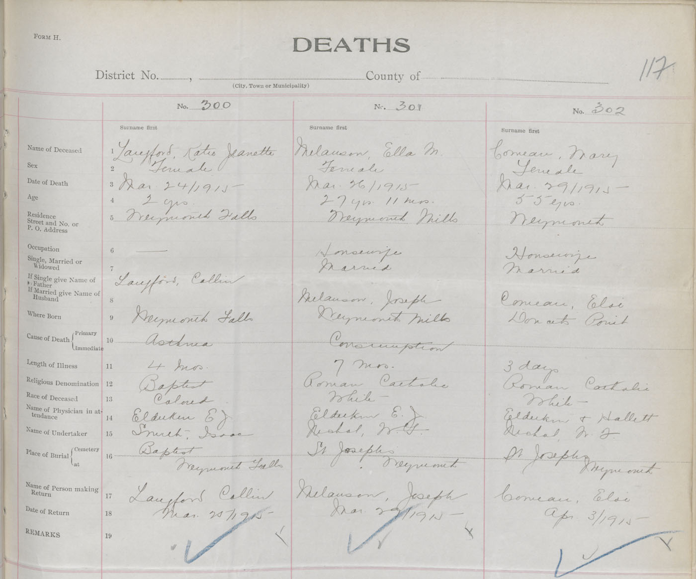 Female Death Registration: Year: 1915 book: 33 page: 117 number: 302