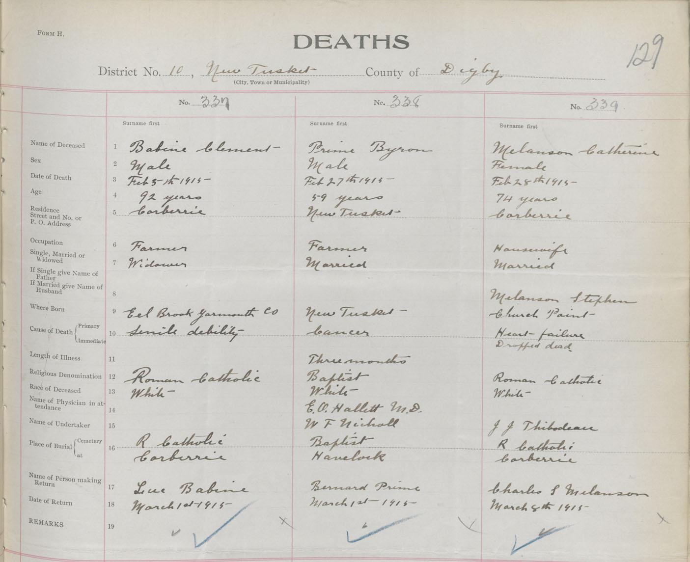 Female Death Registration: Year: 1915 book: 33 page: 129 number: 339