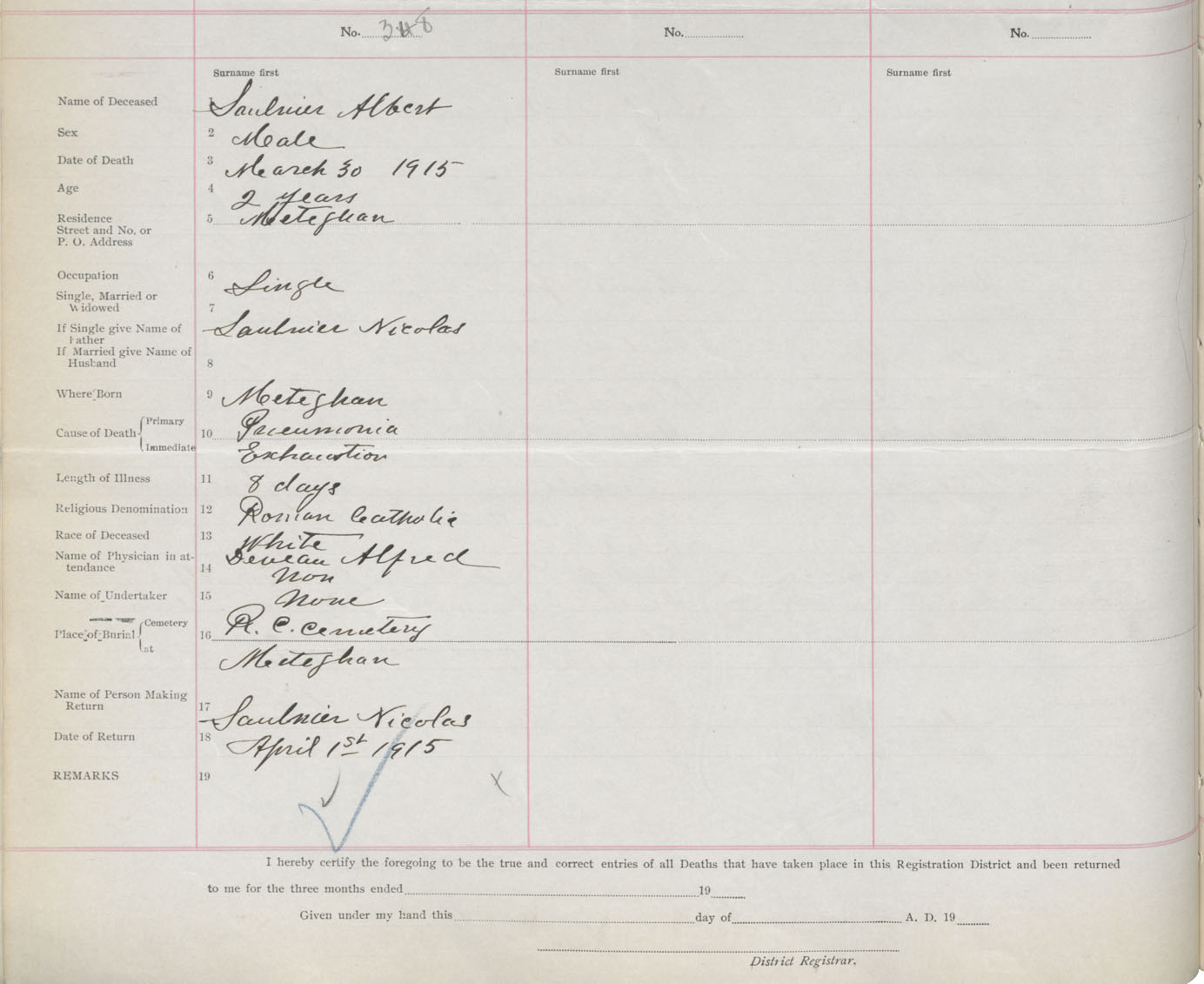 Male Death Registration: Year: 1915 book: 33 page: 132 number: 348
