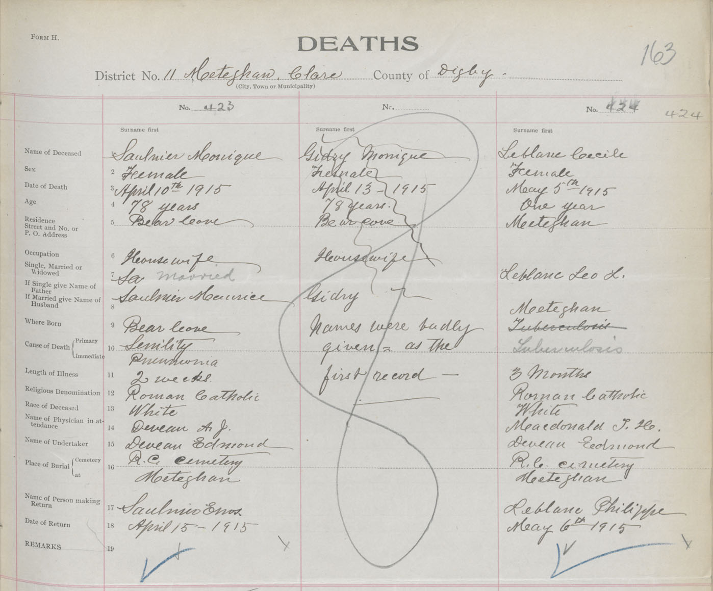 Female Death Registration: Year: 1915 book: 33 page: 163 number: 423