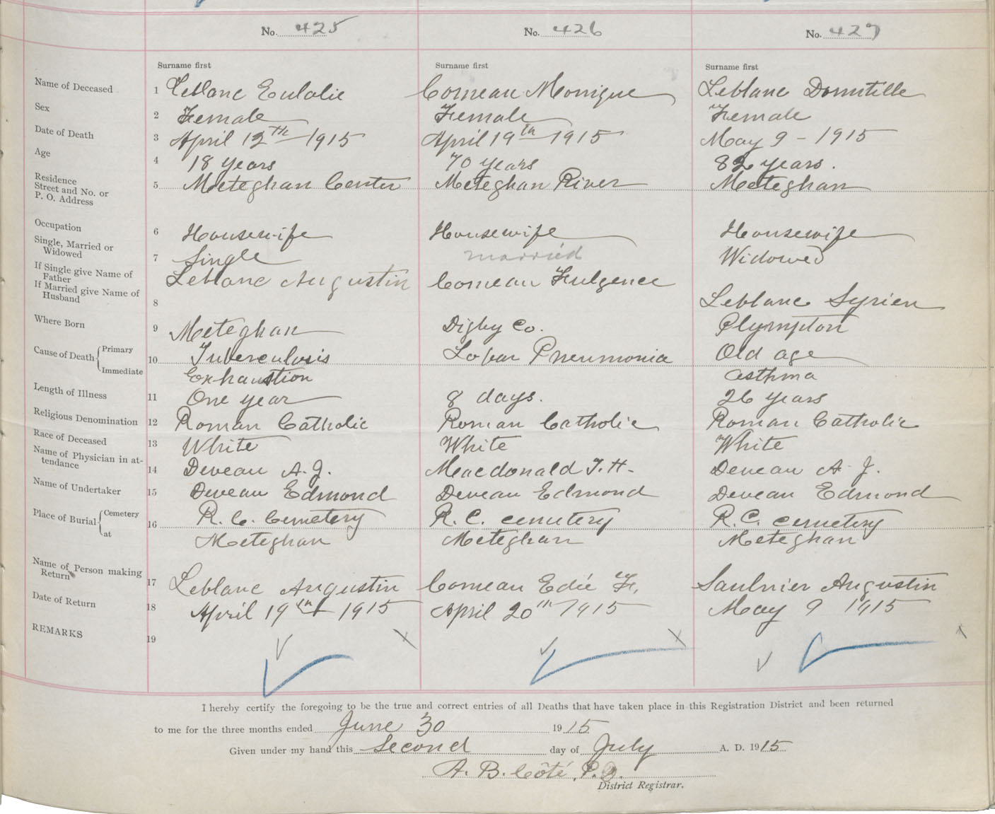 Female Death Registration: Year: 1915 book: 33 page: 163 number: 425