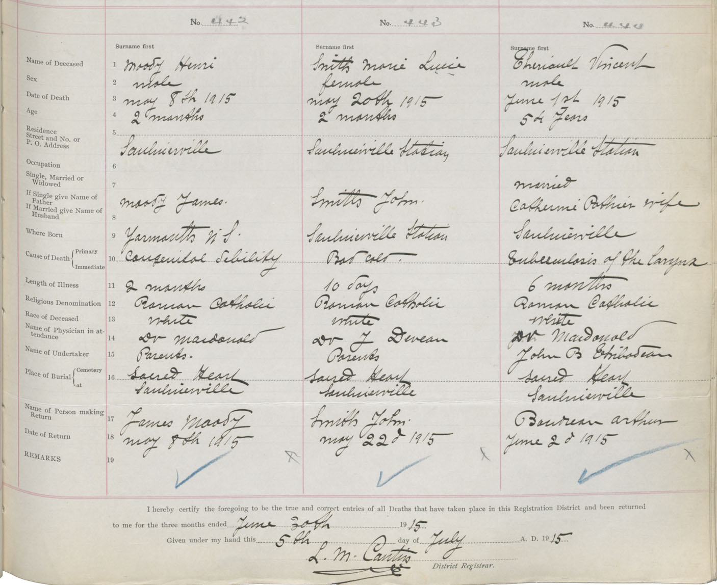 Male Death Registration: Year: 1915 book: 33 page: 167 number: 442