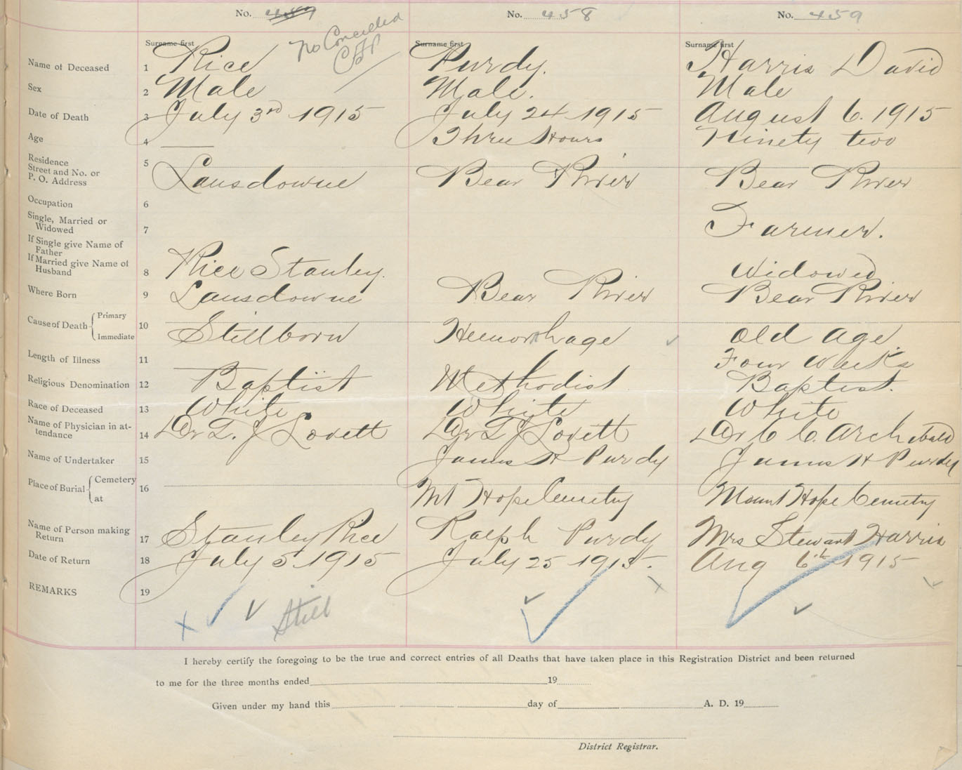 Male Death Registration: Year: 1915 book: 33 page: 171 number: 458