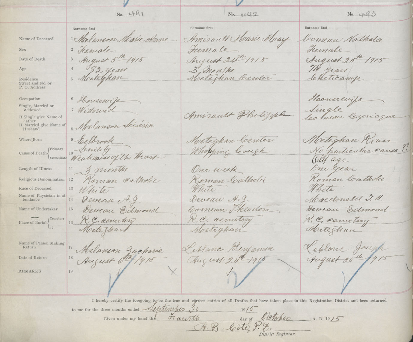 Female Death Registration: Year: 1915 book: 33 page: 186 number: 491