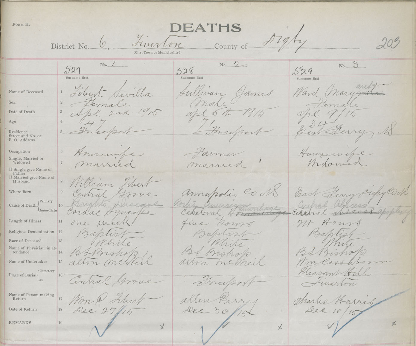Female Death Registration: Year: 1915 book: 33 page: 203 number: 527