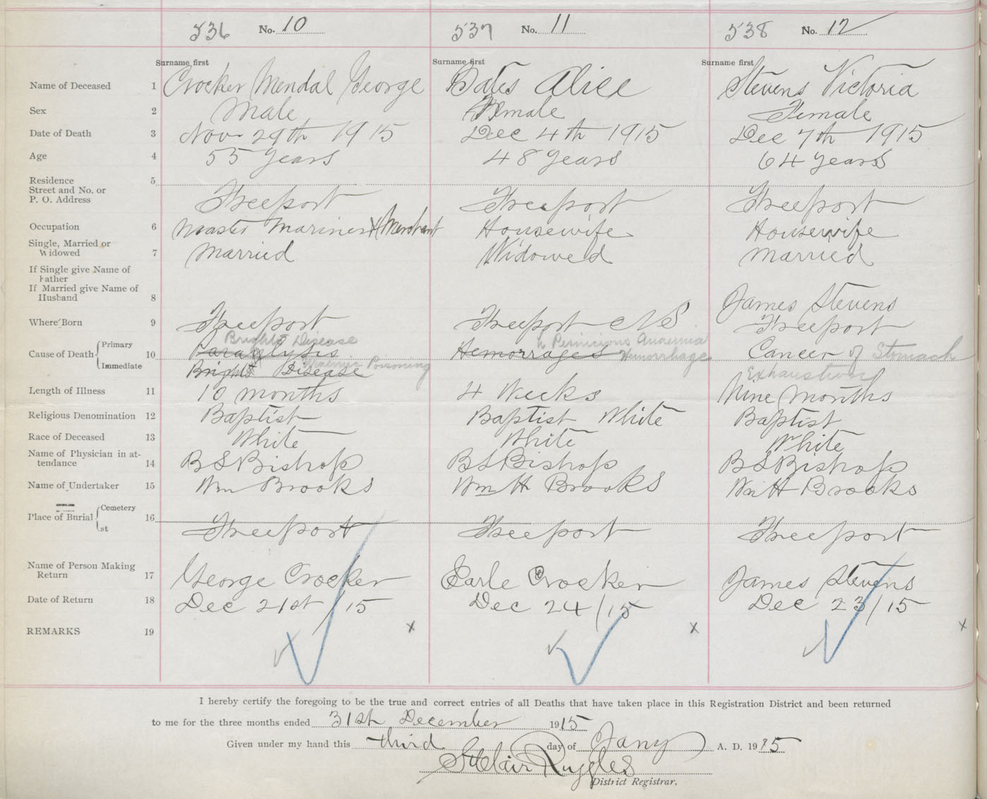Male Death Registration: Year: 1915 book: 33 page: 204 number: 536