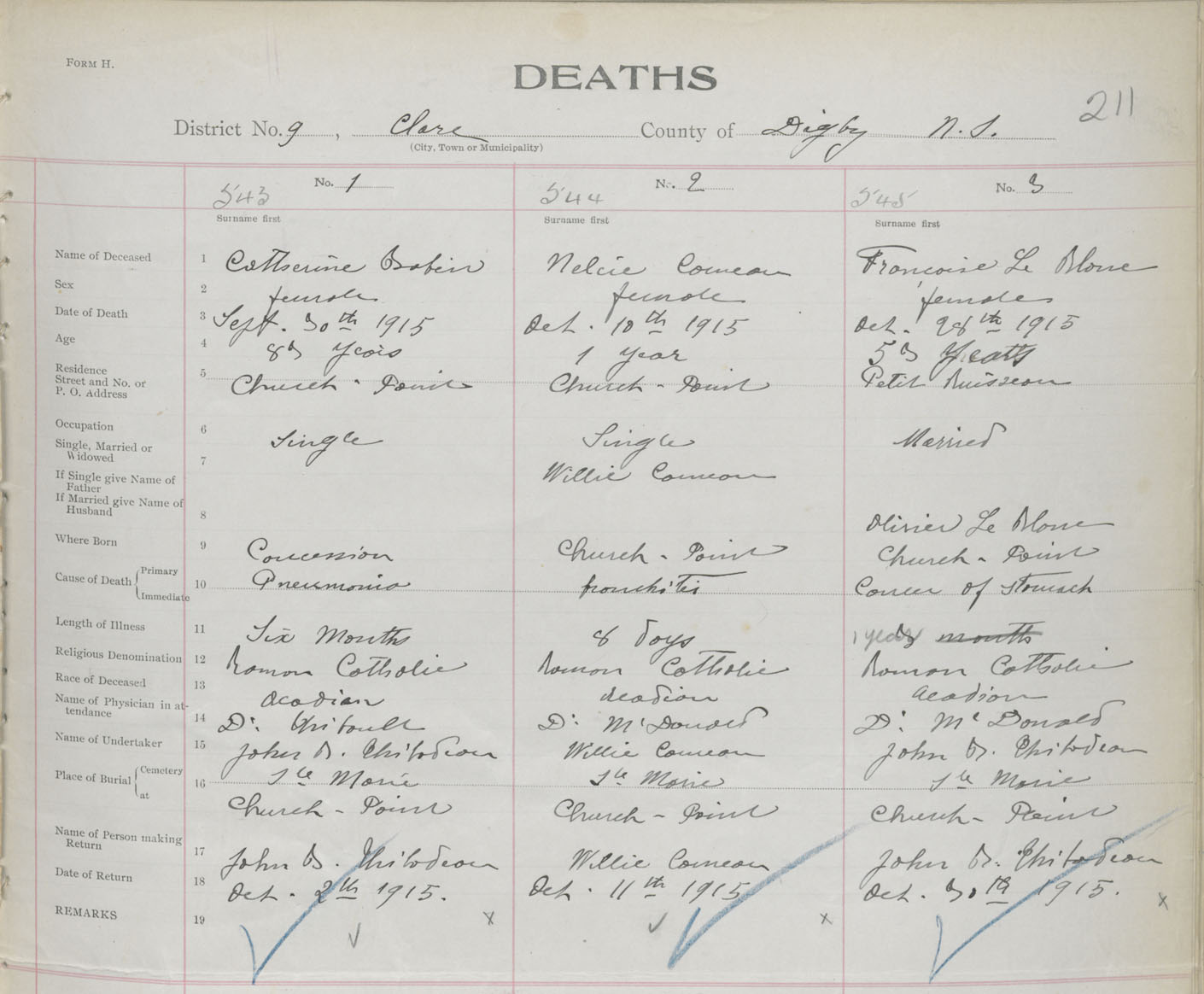 Female Death Registration: Year: 1915 book: 33 page: 211 number: 543