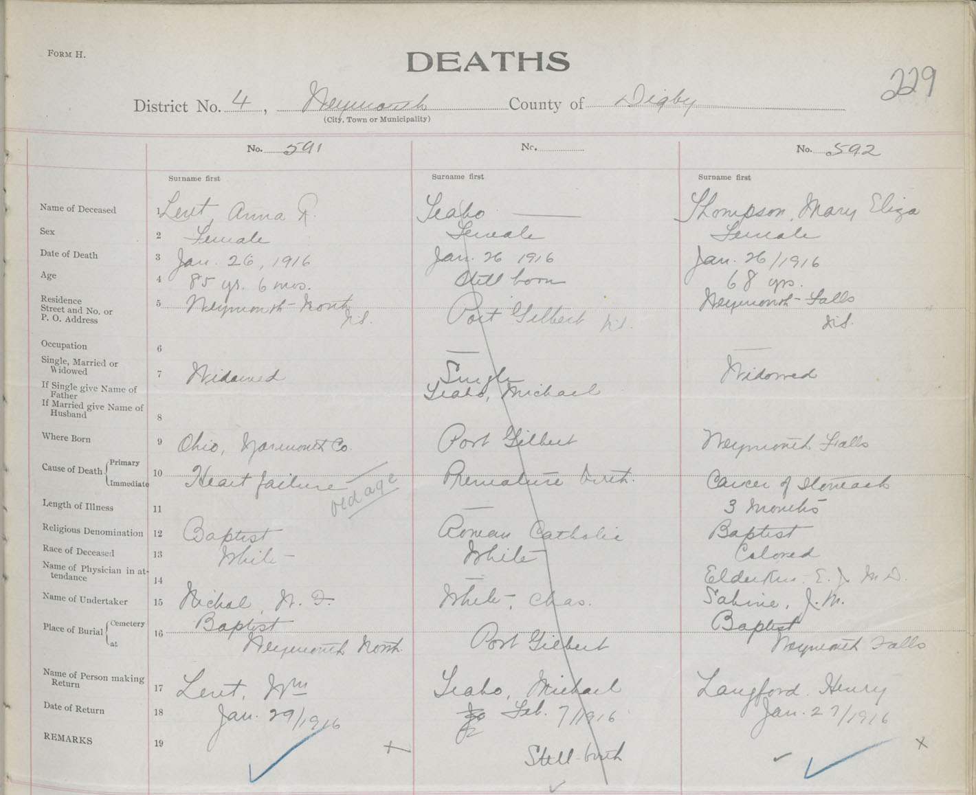 Female Death Registration: Year: 1916 book: 33 page: 229 number: 592