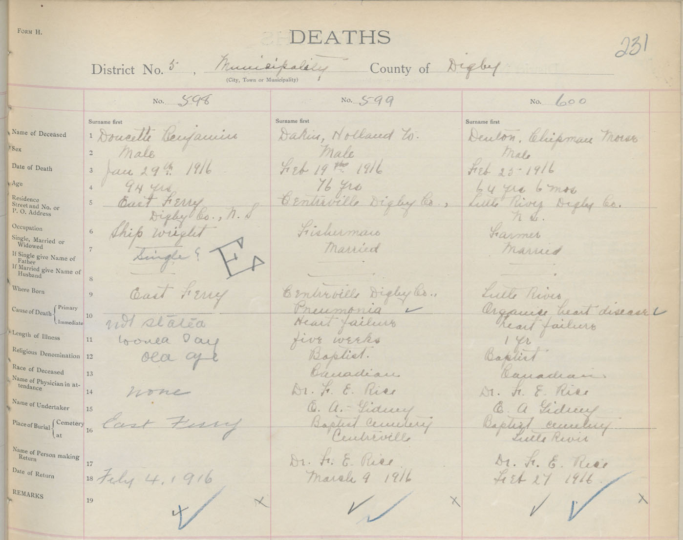 Male Death Registration: Year: 1916 book: 33 page: 231 number: 600