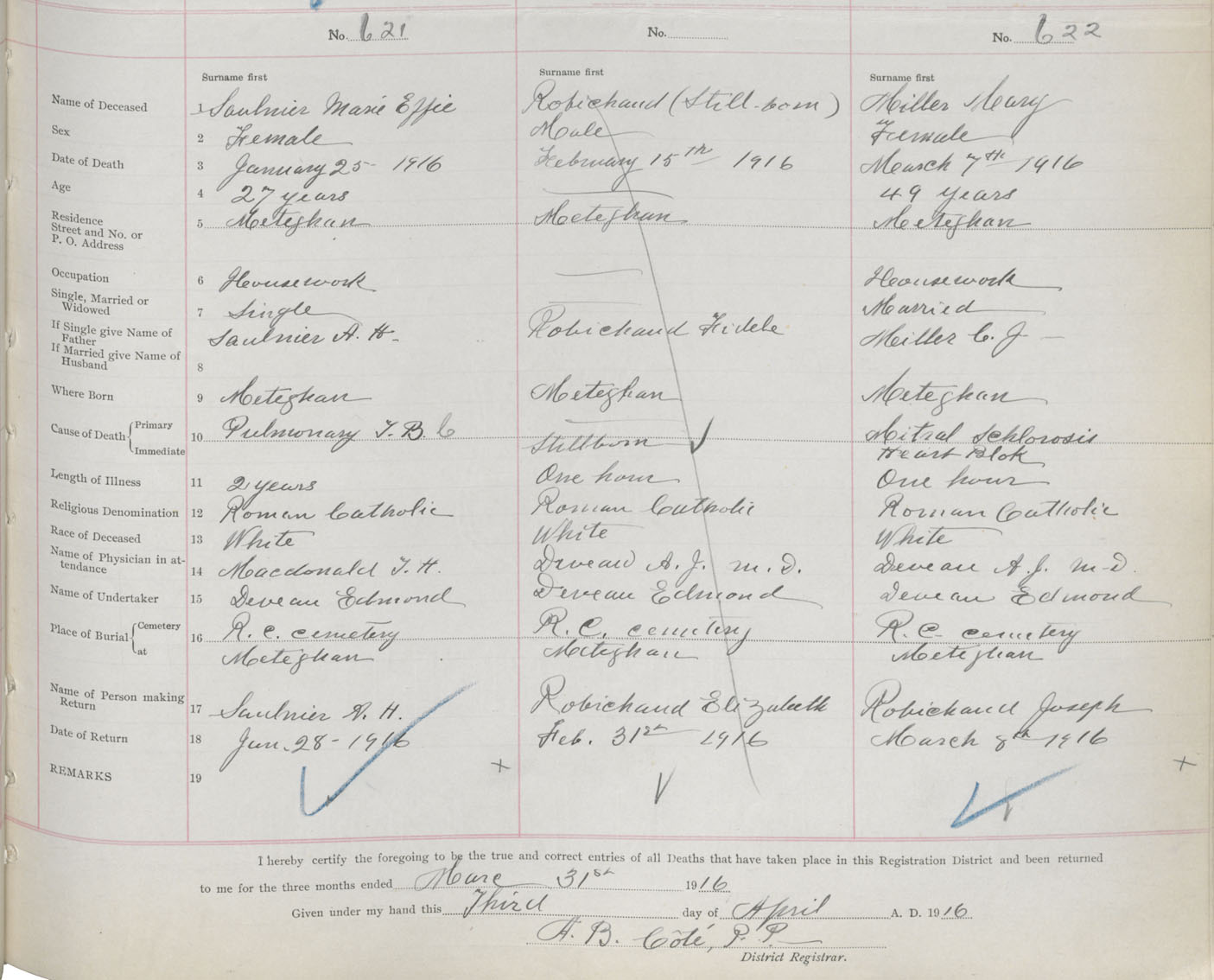 Female Death Registration: Year: 1916 book: 33 page: 243 number: 622