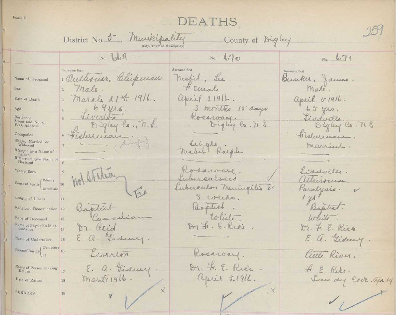 Male Death Registration: Year: 1916 book: 33 page: 259 number: 671